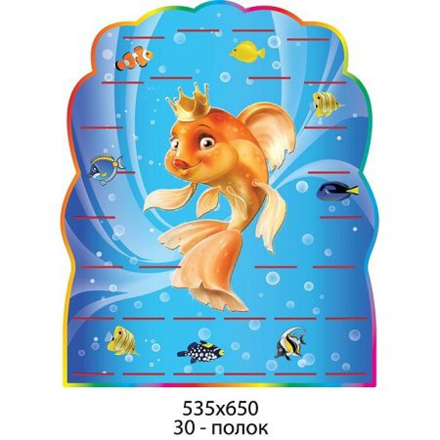 Ширина 535 мм, высота 650 мм до 30 полочек,на каждой полочке есть карманчик для фамилий .