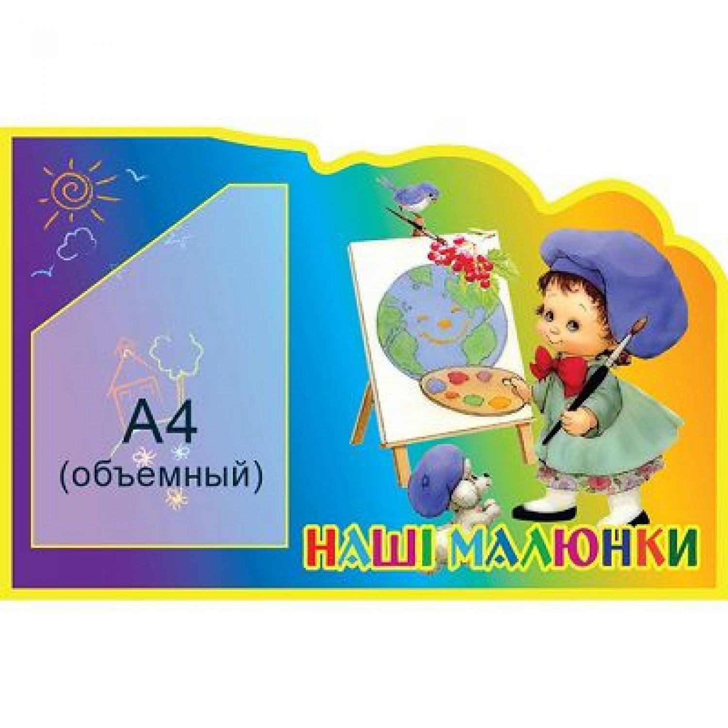 - Стенд Наши рисунки Ребенок рисует (объемный карман)