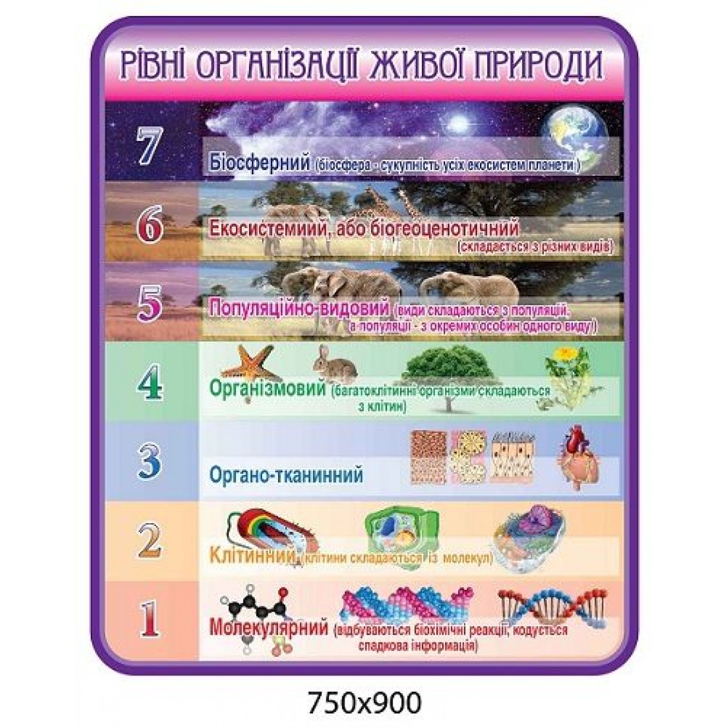 Описание Стенд Уровни организации живой материи (фиолетовый)