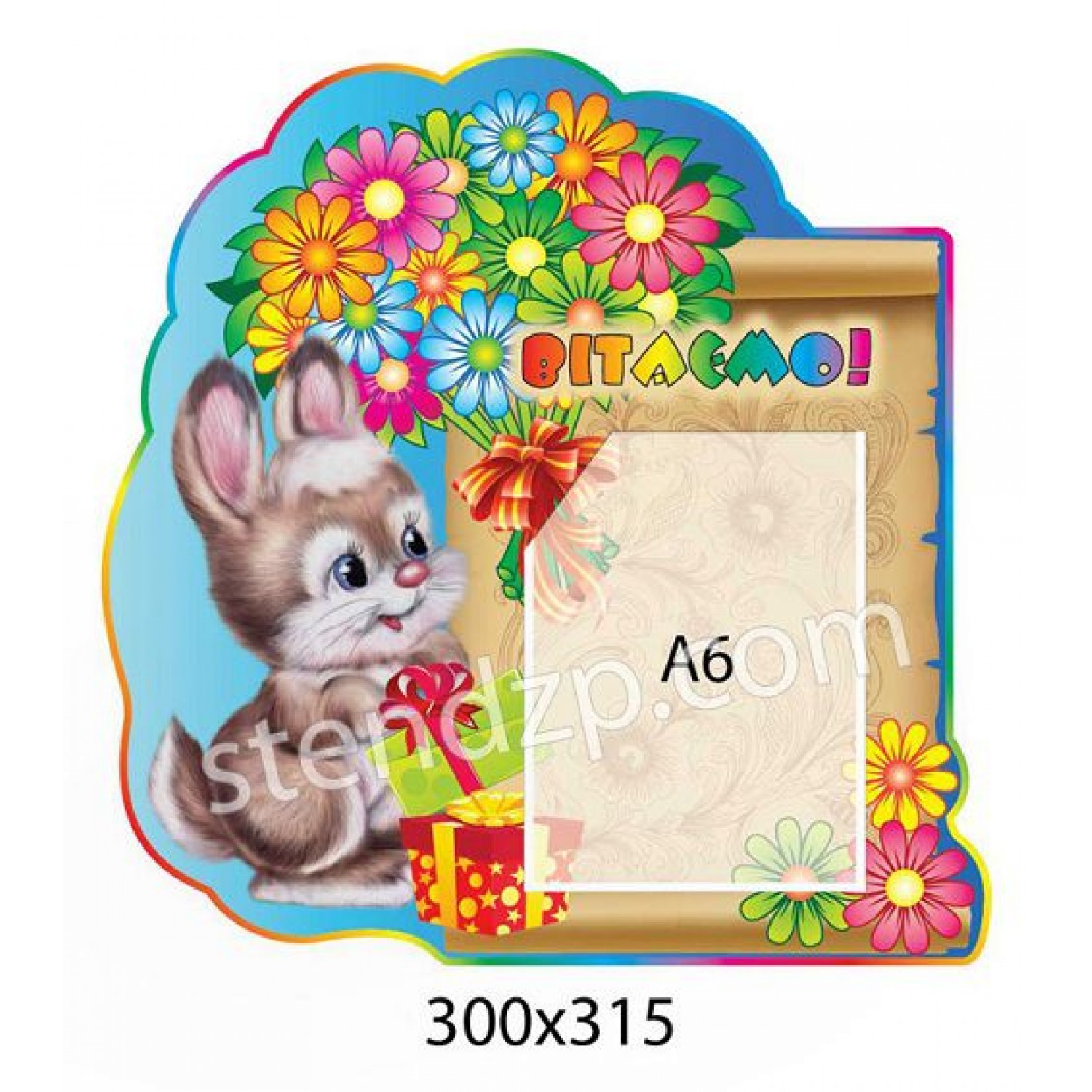 Описание Стенд Поздравляем Зайка с цветами