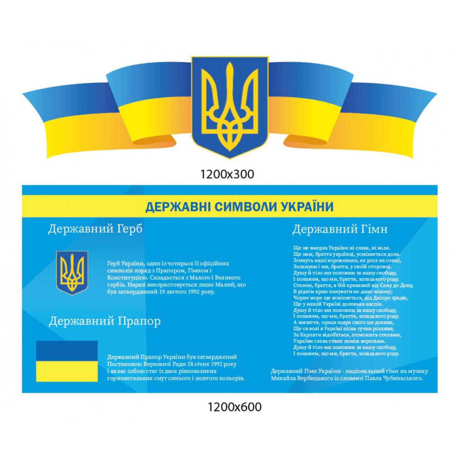 - Информационный комплект "Государственные символы" стенд и название сине-желтые