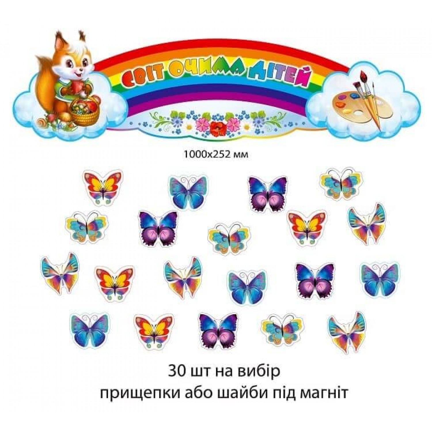 - Комплект держателей для детских рисунков "Бабочки" 30 шт+ заголовок