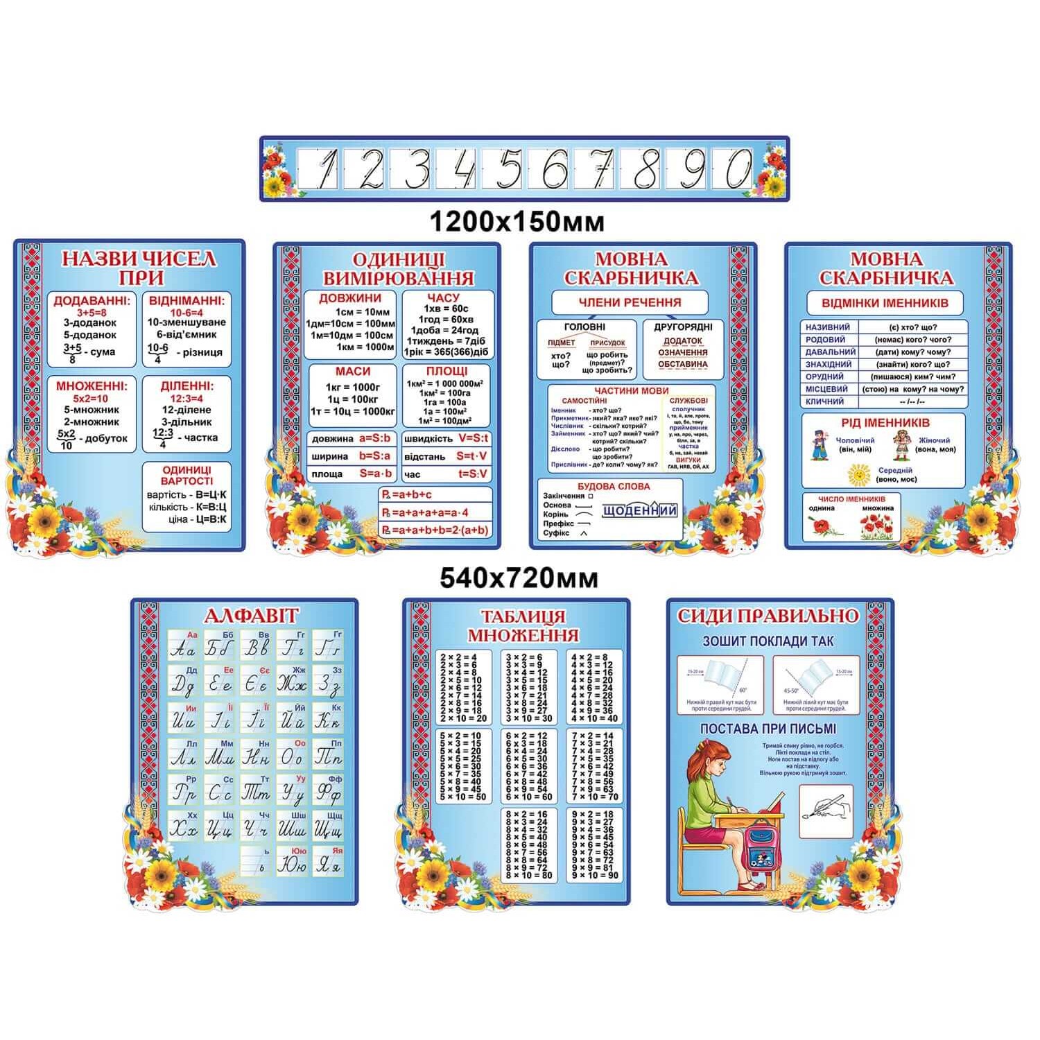 Комплект стендов для начальной школы (синий, 8 предметов)