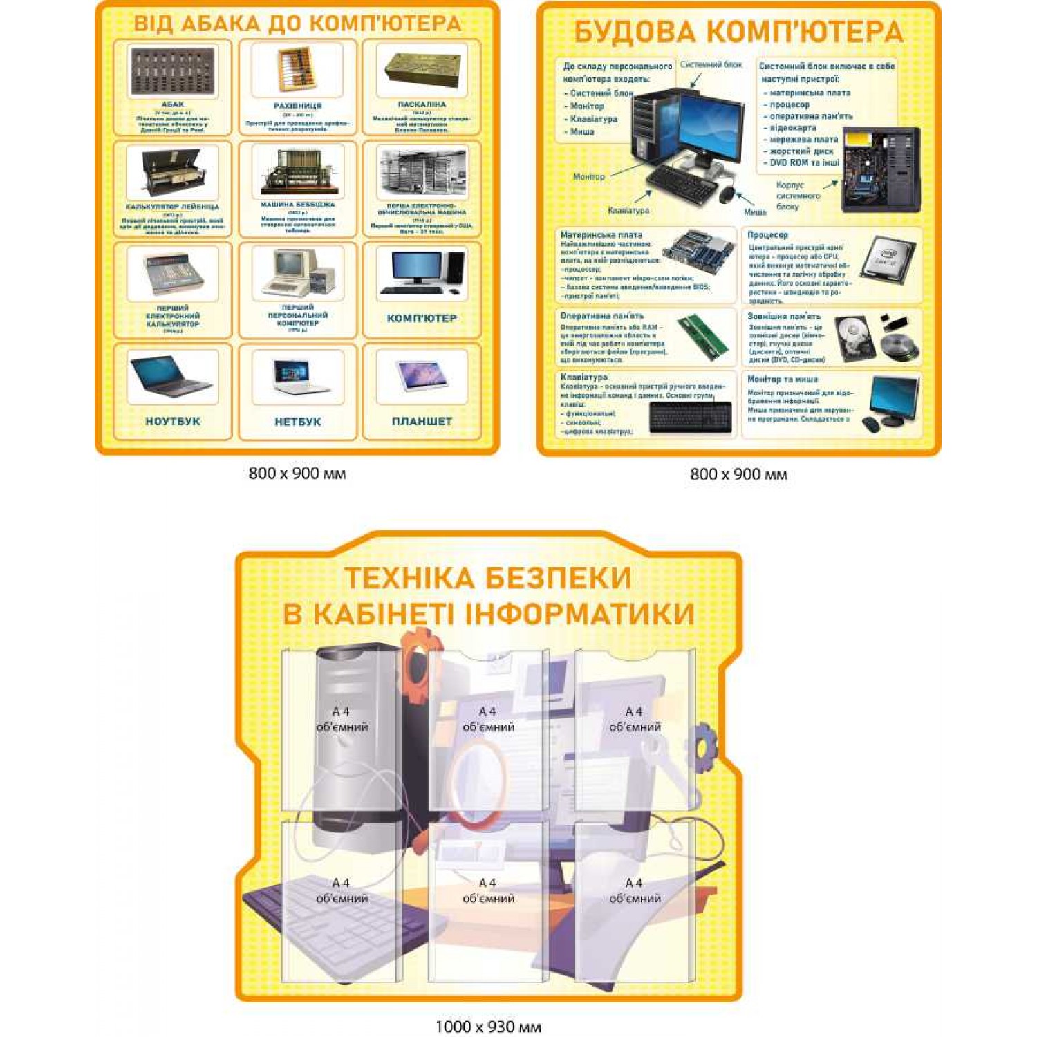 - Комплект стендов для кабинета информатики (история, устройство компьютера, техника безопасности)