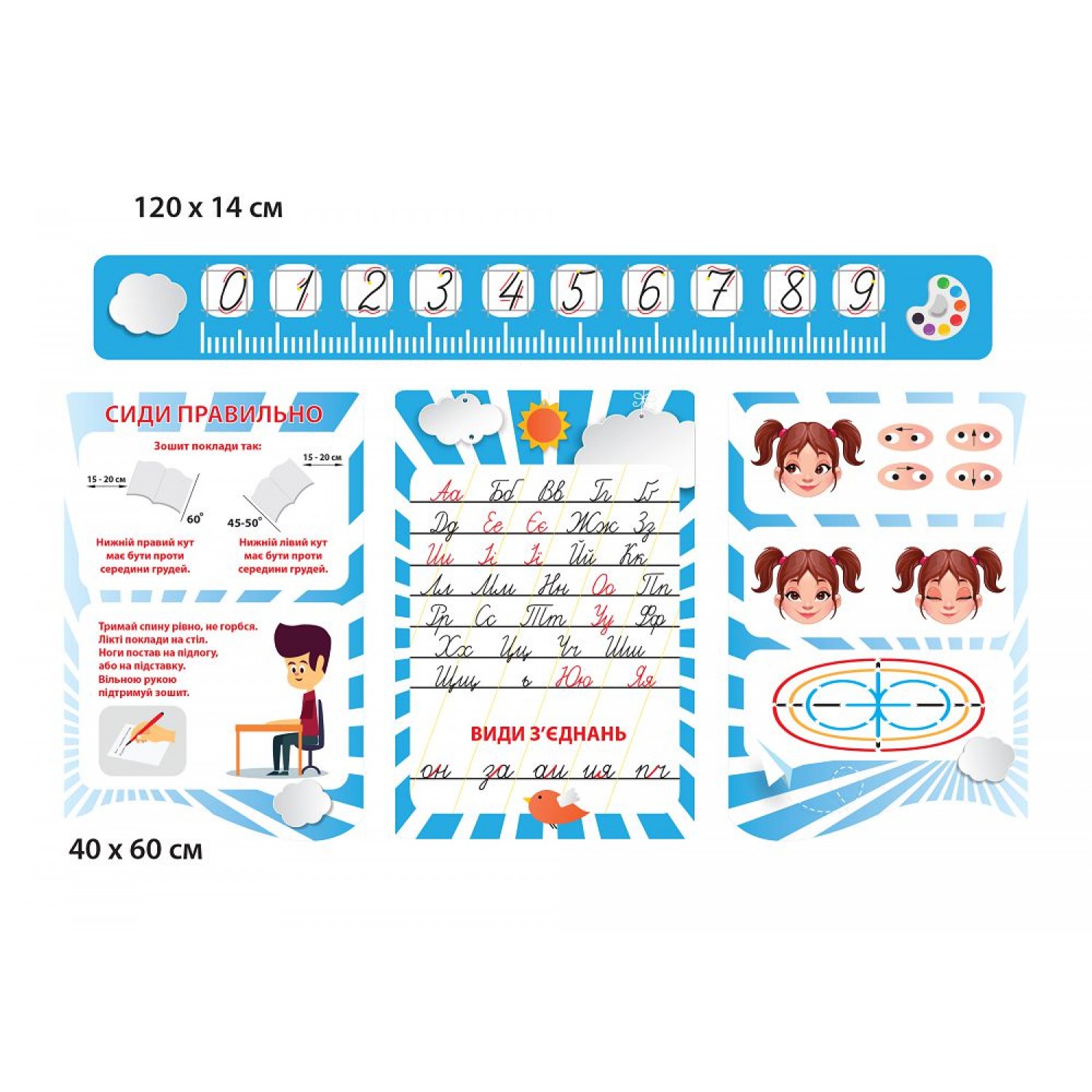 Комплект стендов для начальной школы (4 предмета, цвет голубой)