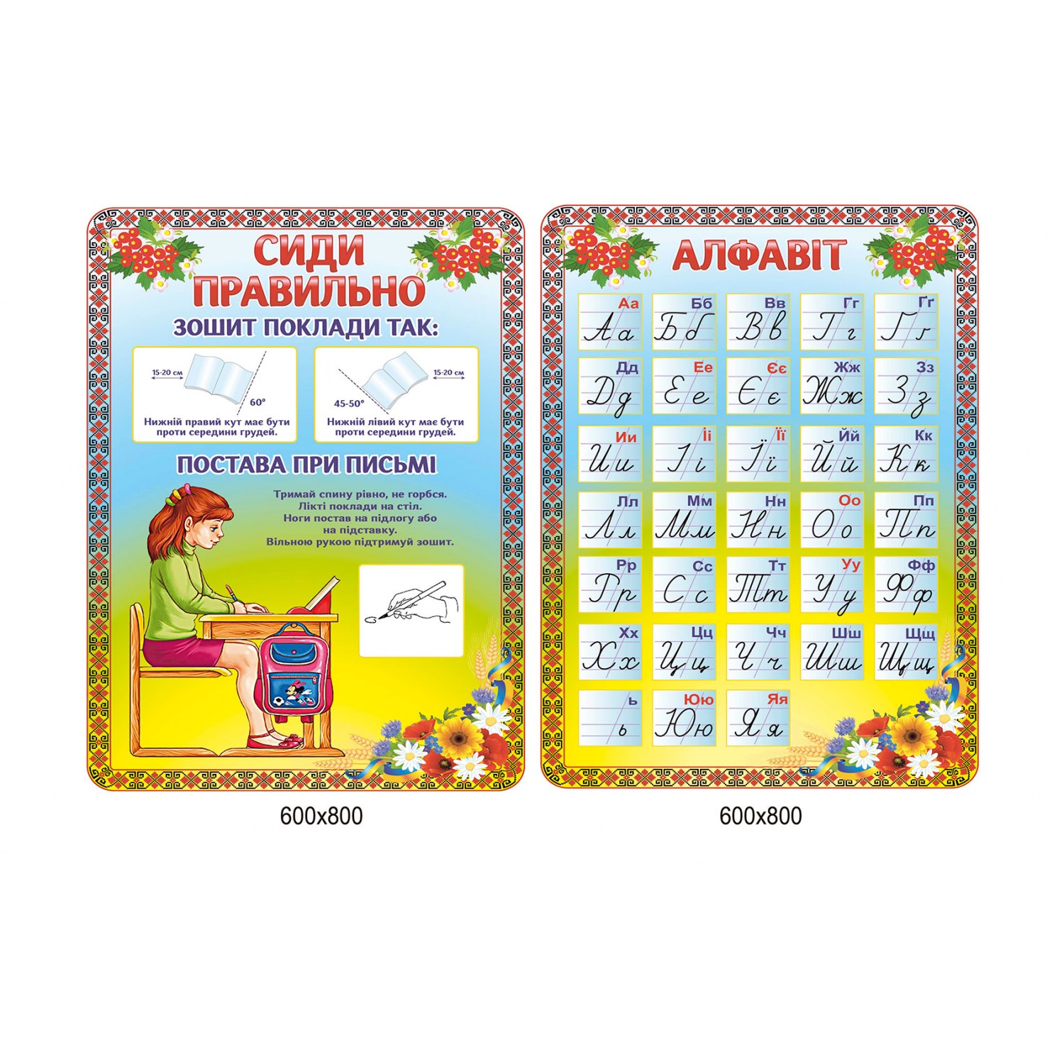 Комплект стендов для начальной школы Сиди правильно, Алфавит (желто-голубой)