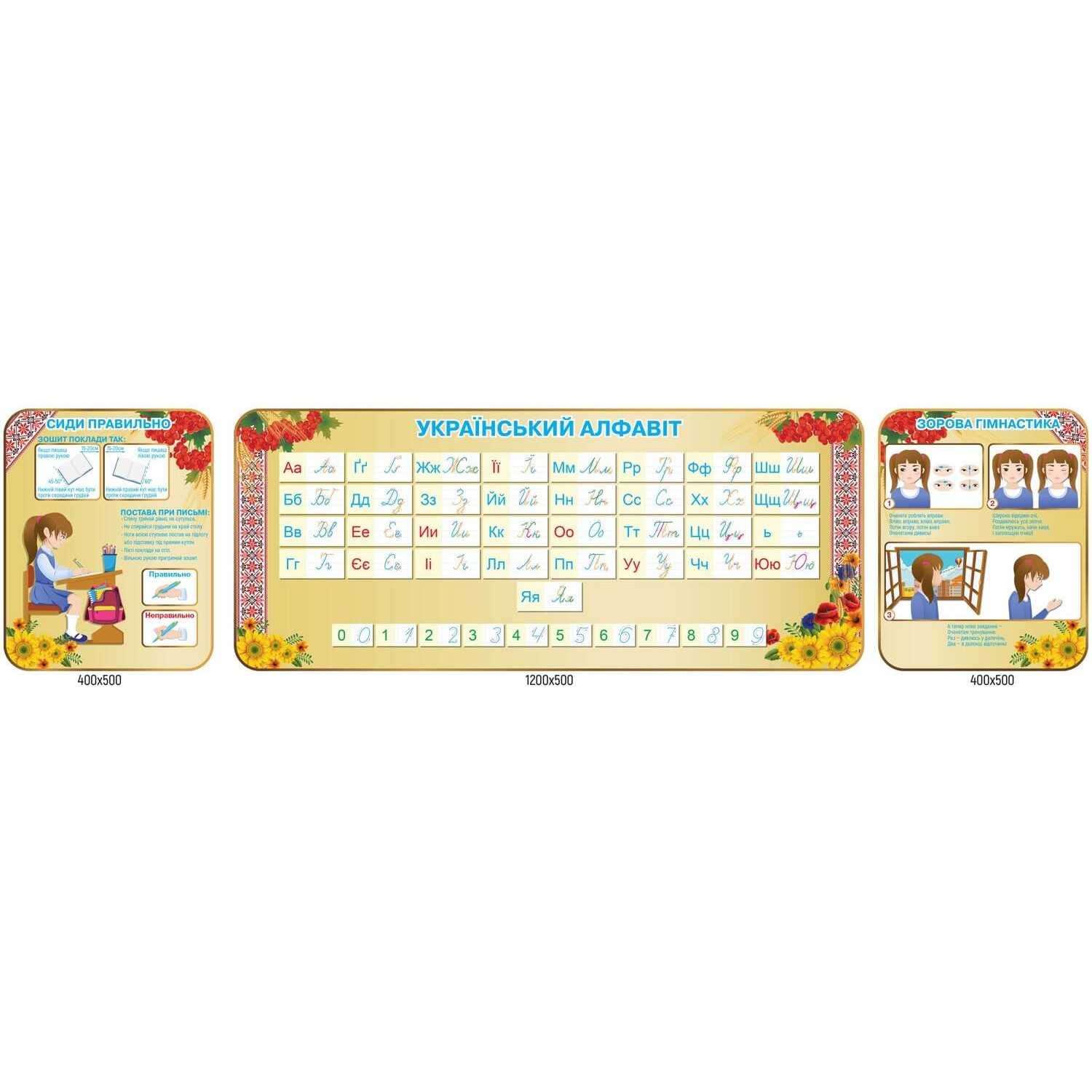 - Комплект стендов для начальной школы Сиди правильно, Алфавит, зрительная гимнастика (цвет бежевый)