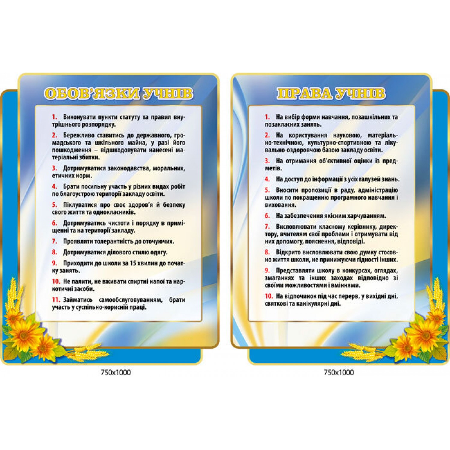 - Комплект стендов Права учеников, обязанности учеников подсолнечник (цвет голубой)