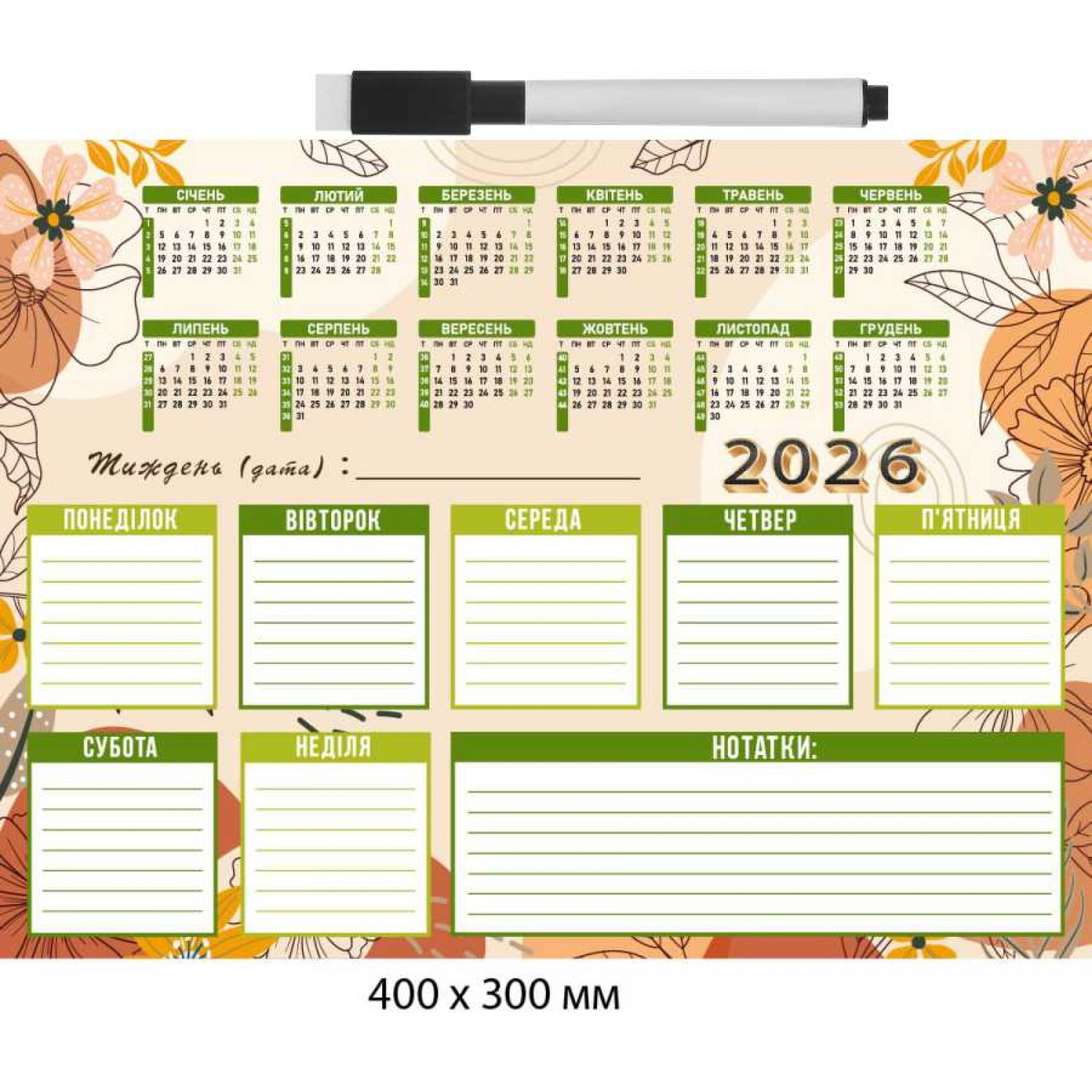 Магнитный недельный планер "Зеленый стиль" 400×300 мм