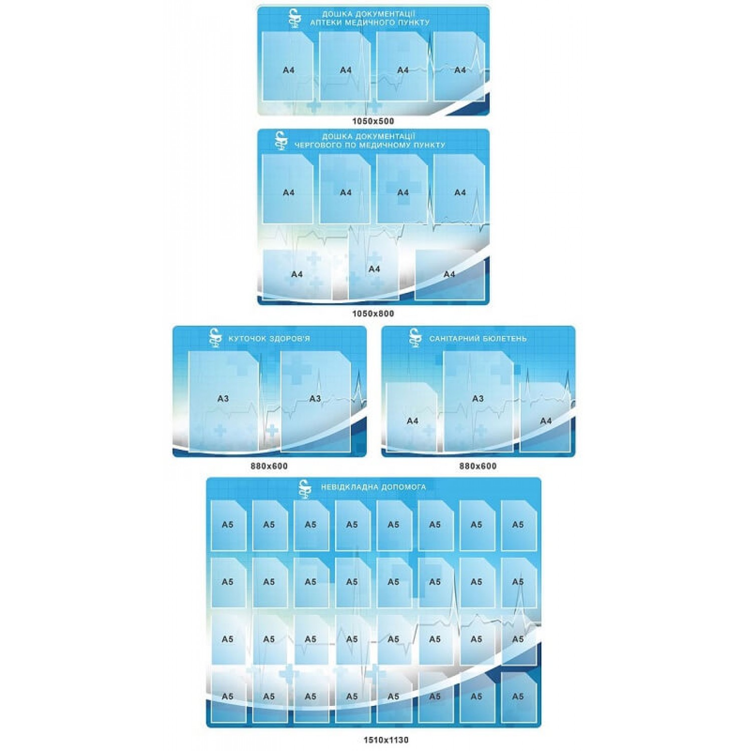 Набор информационных стендов для медицинского учреждения (голубой фон кардиограмма)