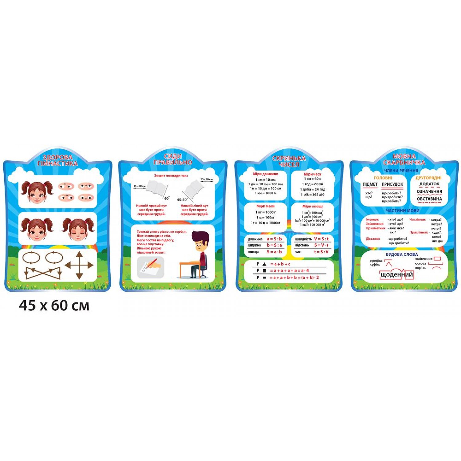 - Набор для кабинета начальной школы (4 стенда, голубой фон)
