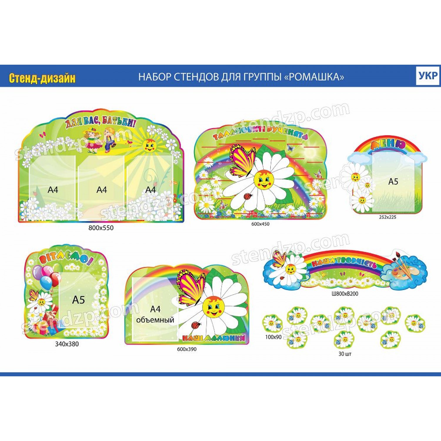 Описание Набор стендов для группы Ромашка (зеленый)