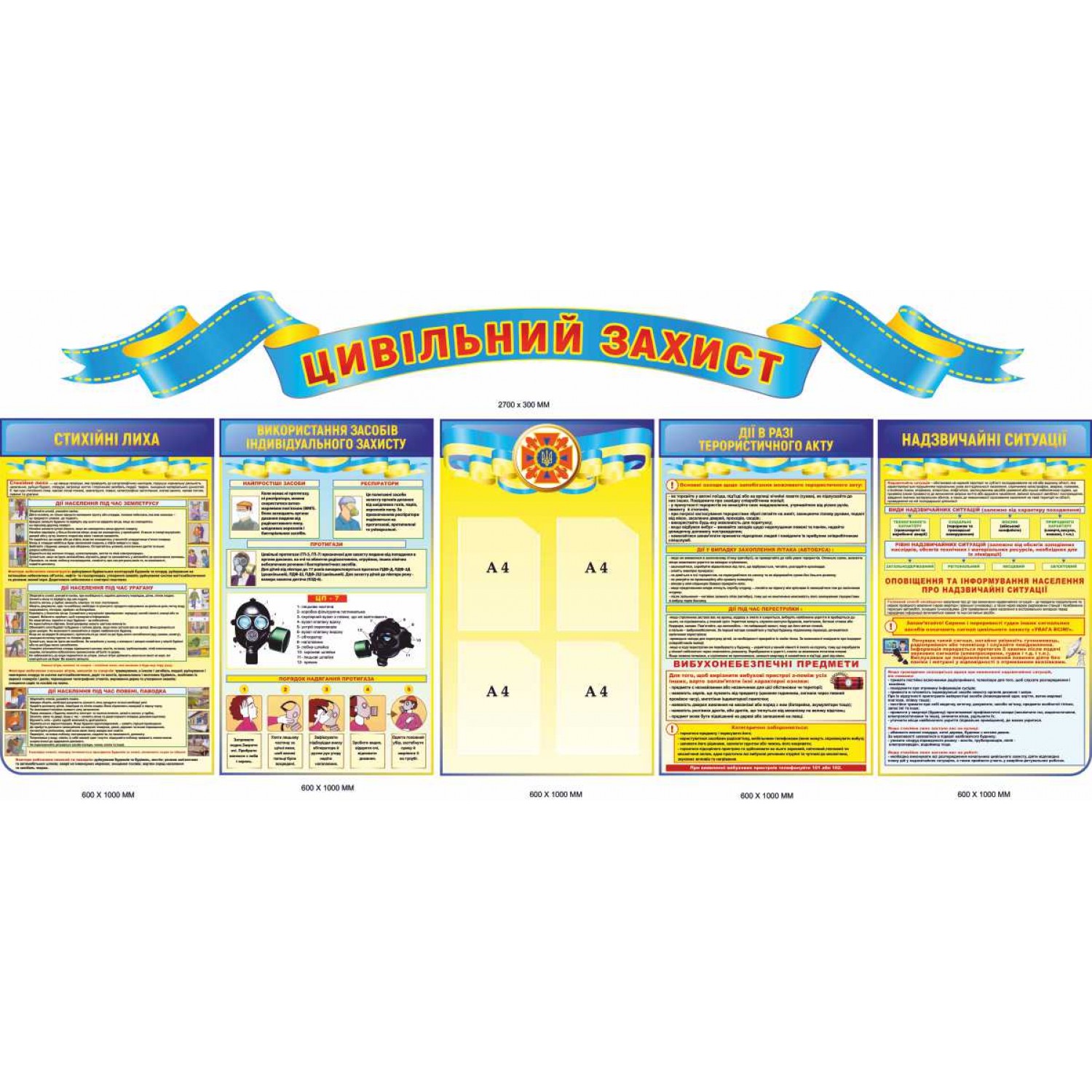Набор стендов "Гражданская защита" (желто-голубые, 5 шт и заголовок)