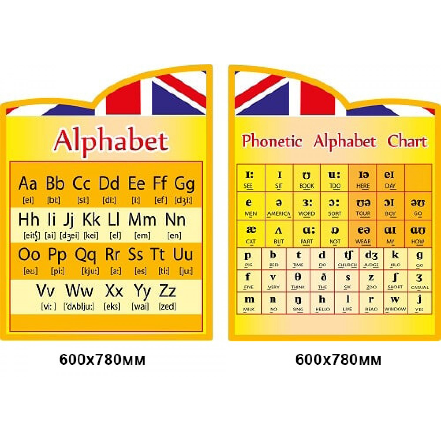 Набор стендов в кабинет английского "Алфавит" (желтый фон, британский флаг)