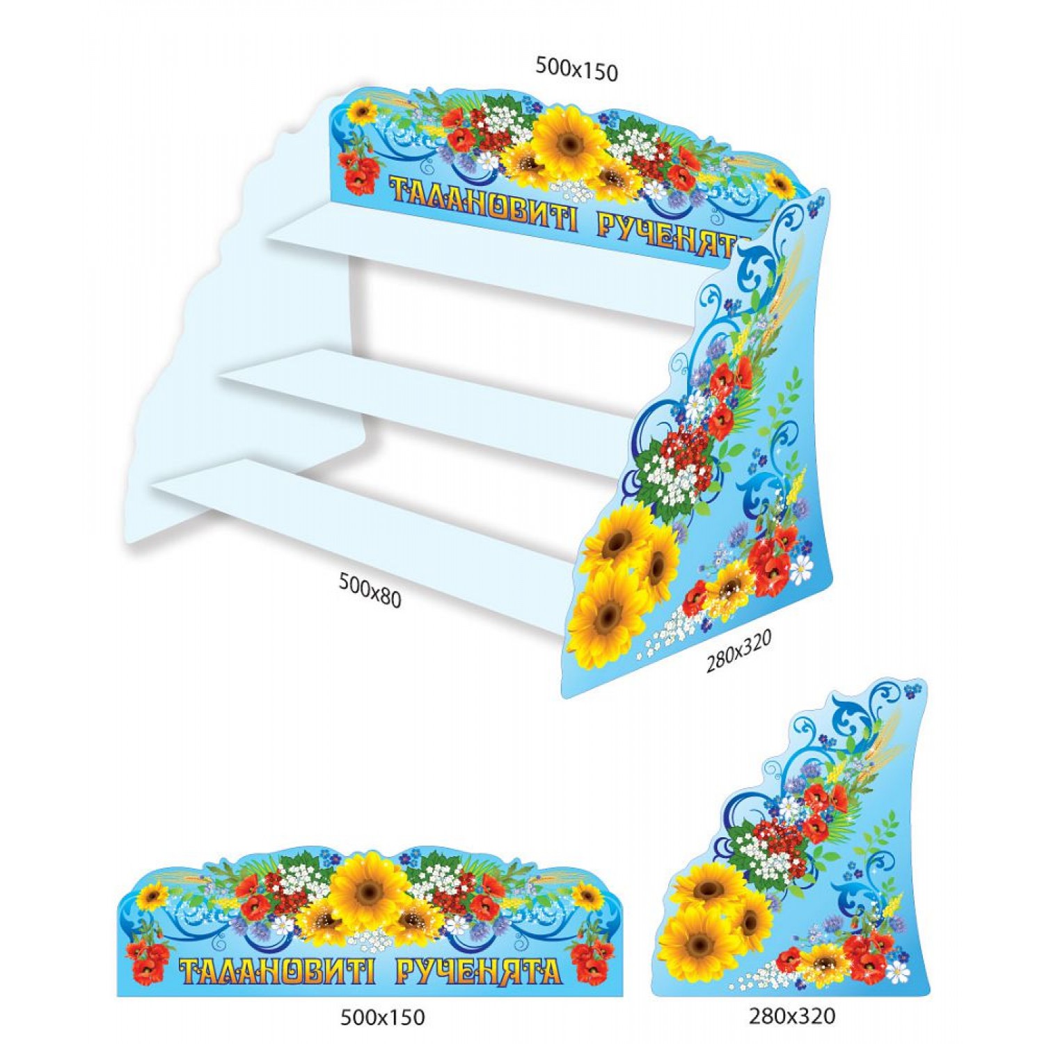Сотрудники фирмы «Стенд-дизайн» при создании такой подставки соединят пологие волны, вырезанные на боковых краях и верхней детали, и цветочные узоры. Это позволило обеспечить ощущение нежности и красоты от этой важной детали в оформлении помещения группы.