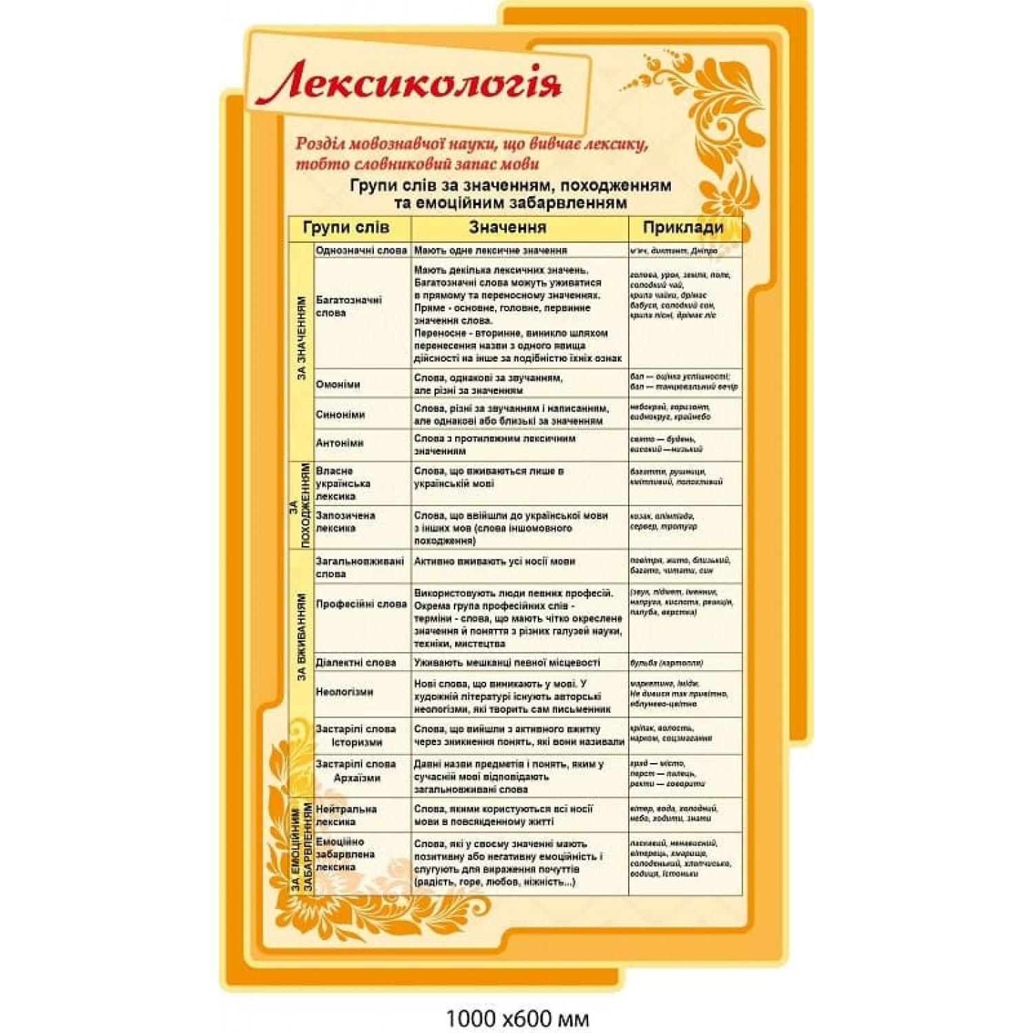 Оформление кабинета украинского языка "Лексикология" (бежевый фон, желтое обрамление)