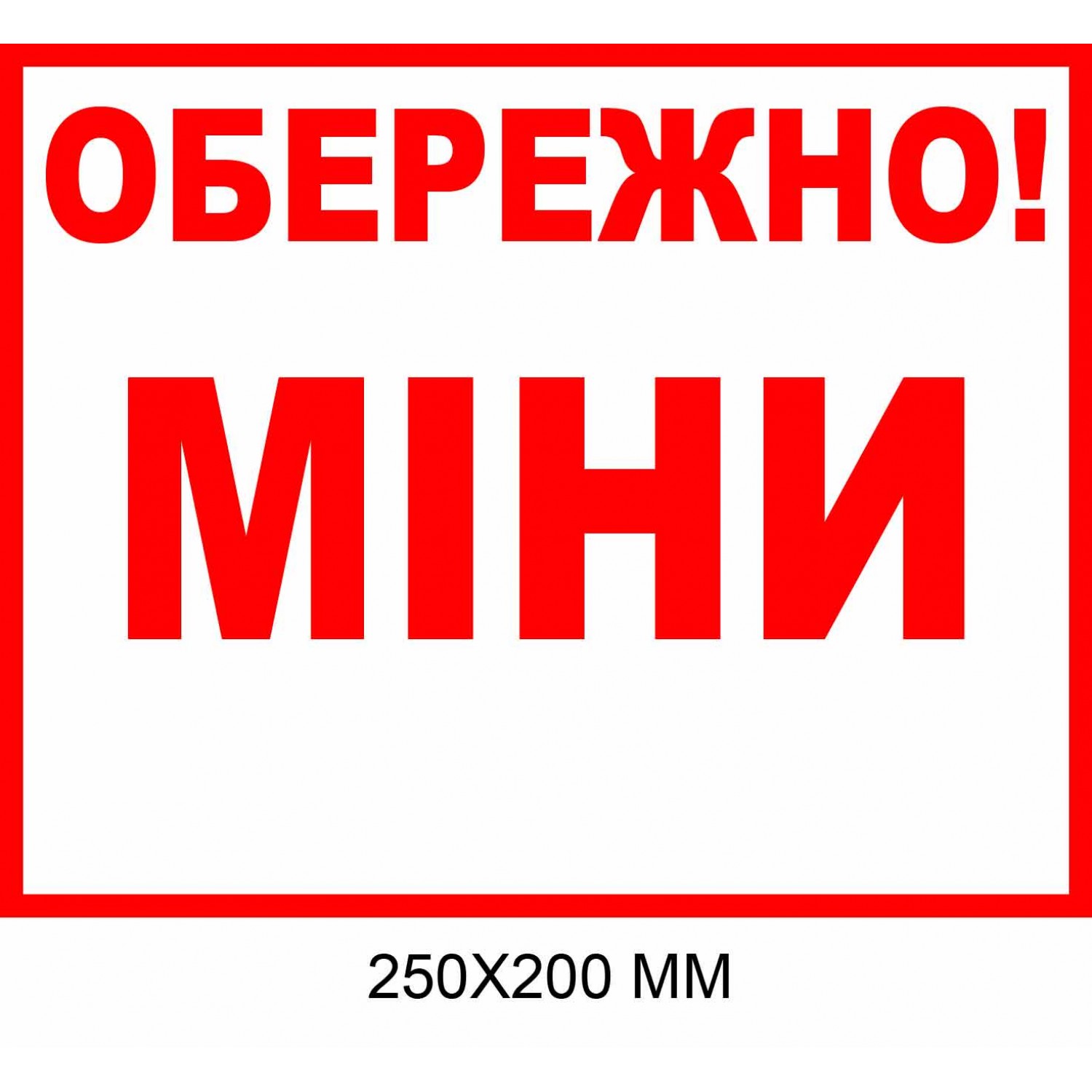 - Осторожно мины табличка белая с красной надписью 250×200 мм