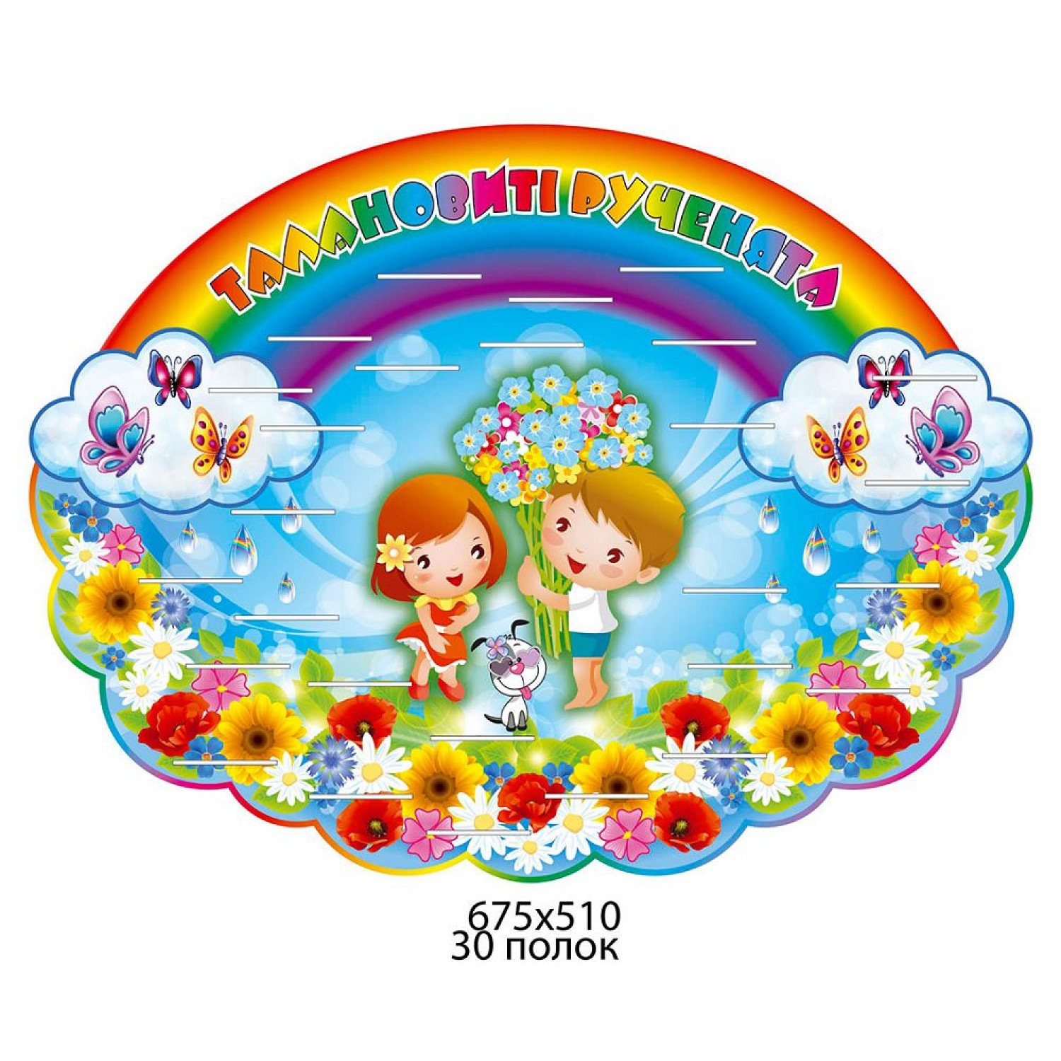 - Подставка под лепки Дети с цветами под радугой