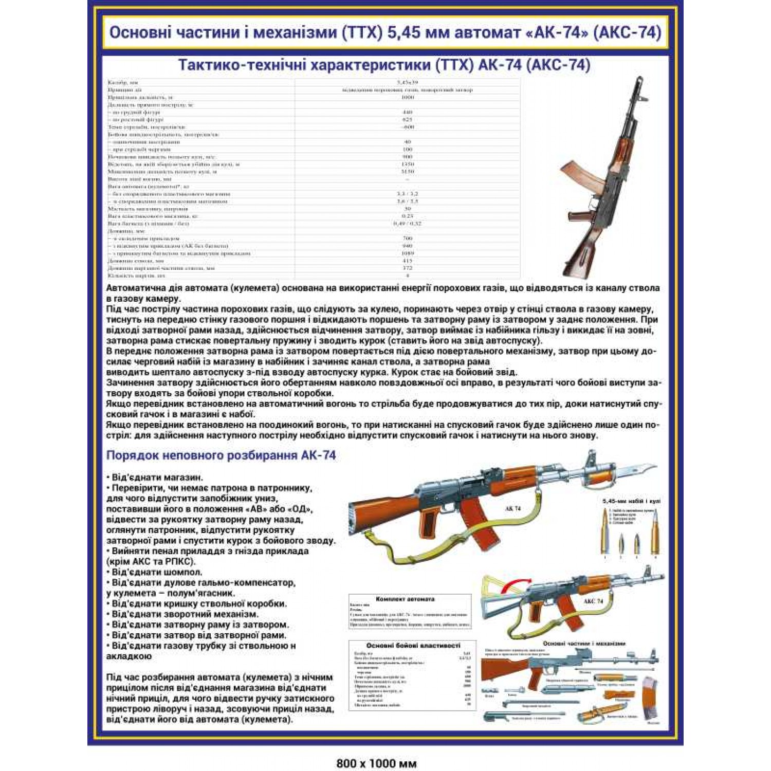 Плакат основные части и механизмы (ТТХ) 5.45 мм автомат АК-74
