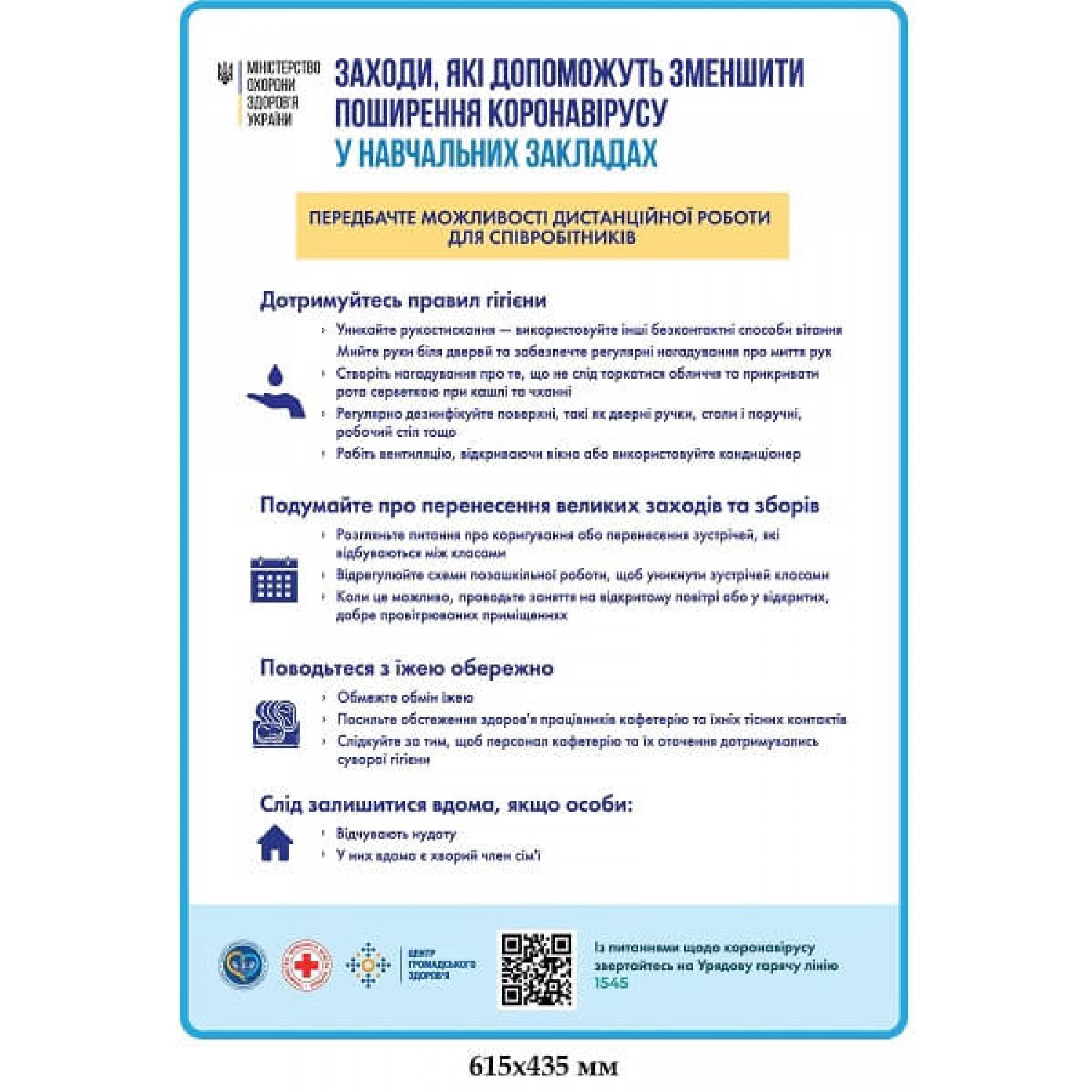 - Плакат Рекомендации для учебных заведений Мероприятия по уменьшению распространения Covid19