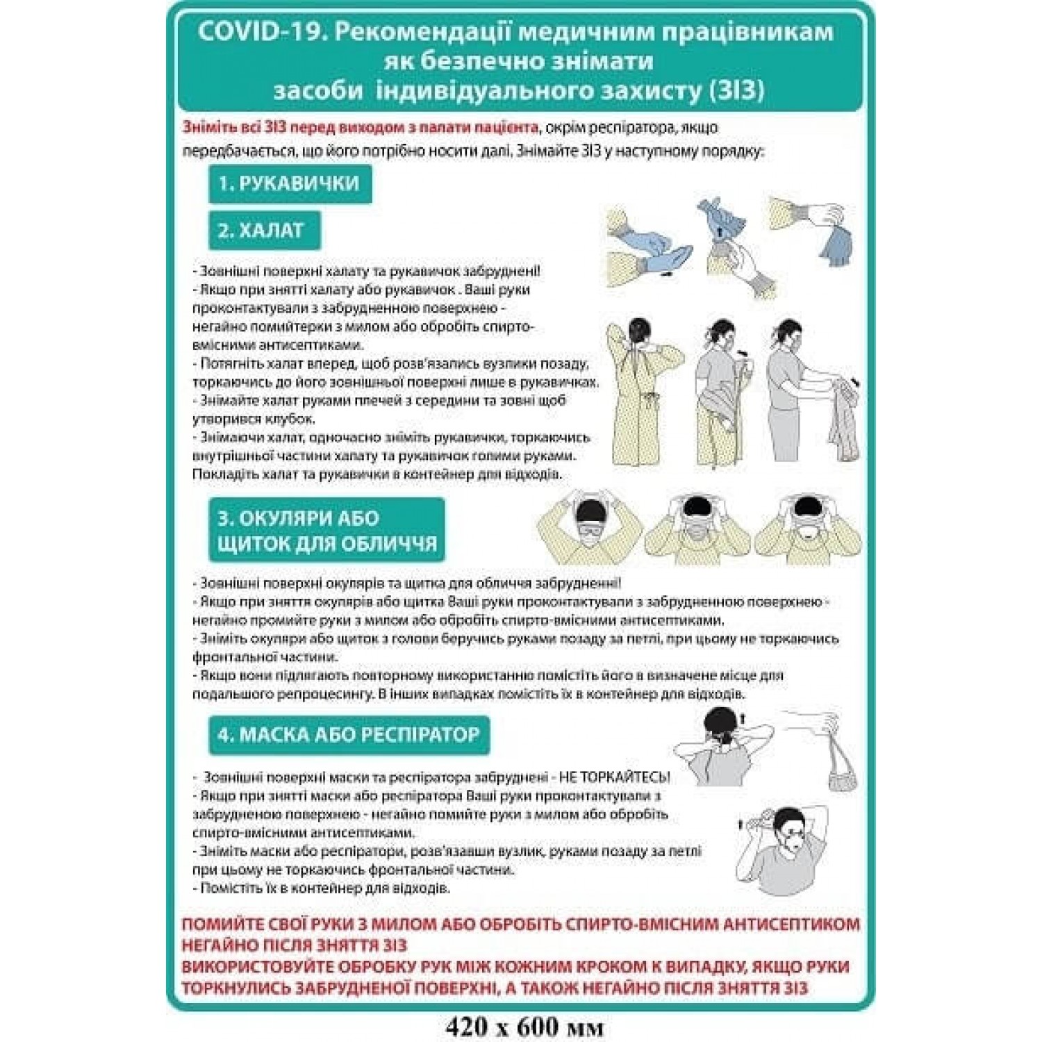 - Плакат Рекомендации по безопасному снятию средств индивидуальной защиты (голубой)