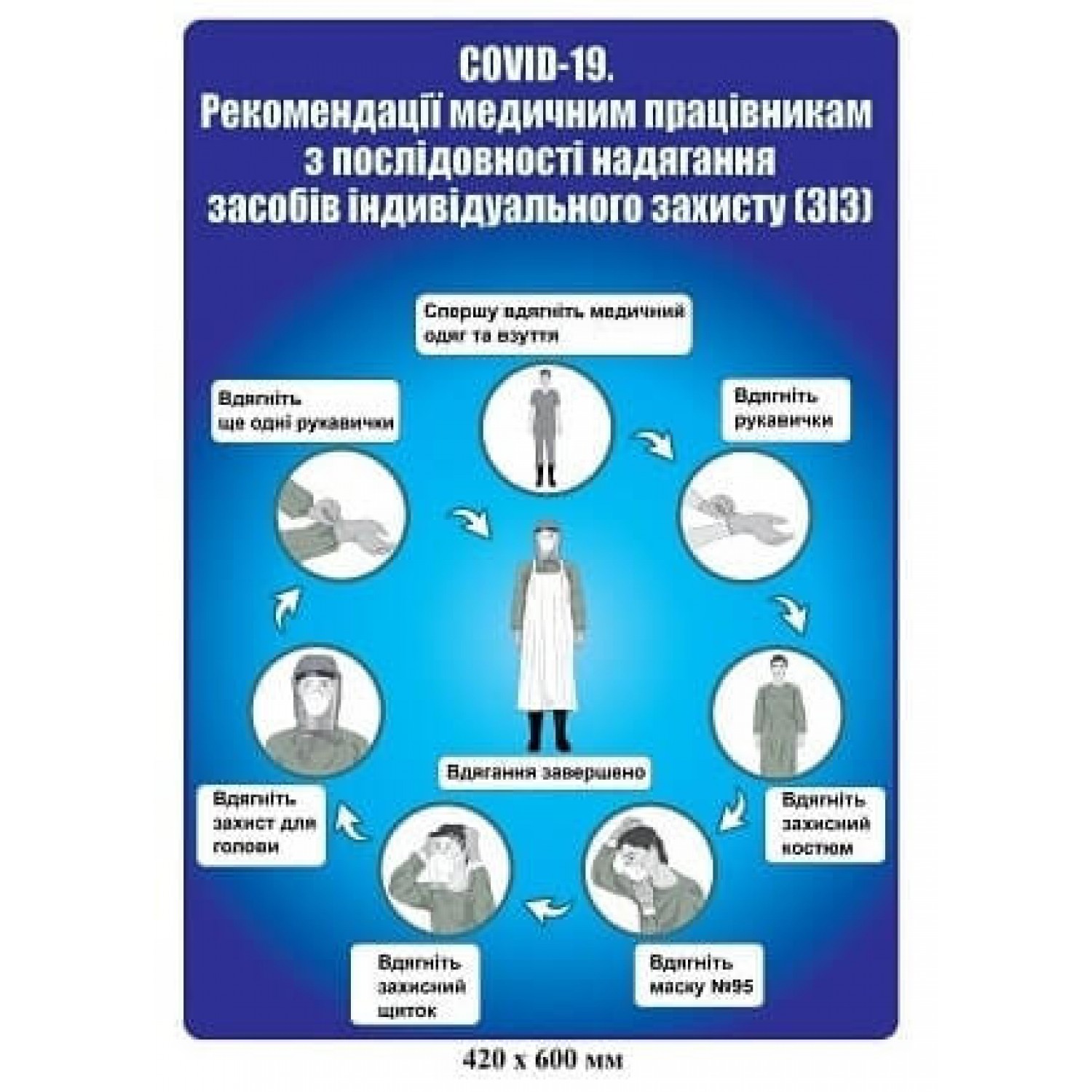 Плакат-схема "Последовательность надевания средств индивидуальной защиты" (синий фон)