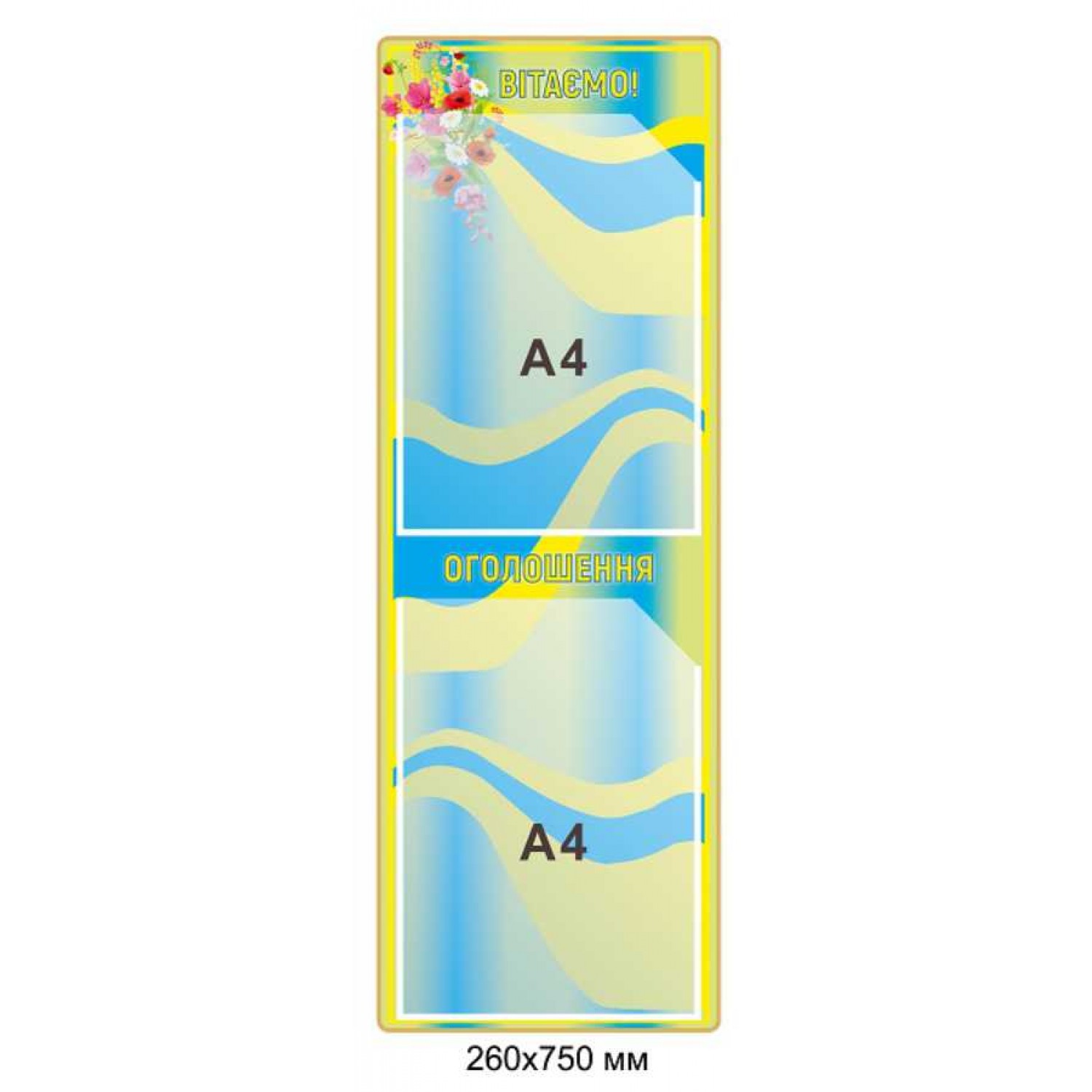 - Поздравительный стенд "Желто-голубые волны", 2 кармана А4