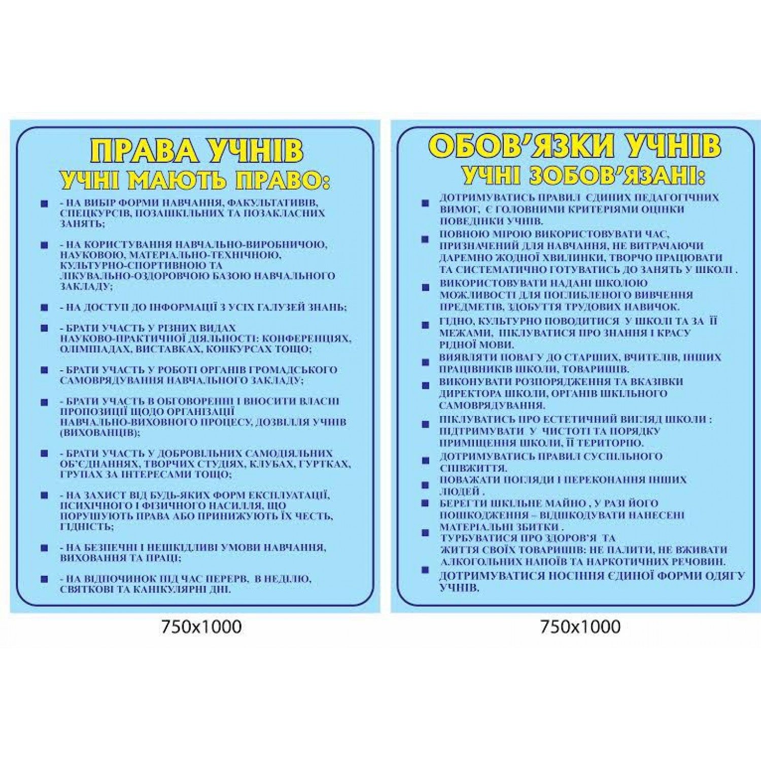 - Стенд Права и обязанности учеников (голубой)