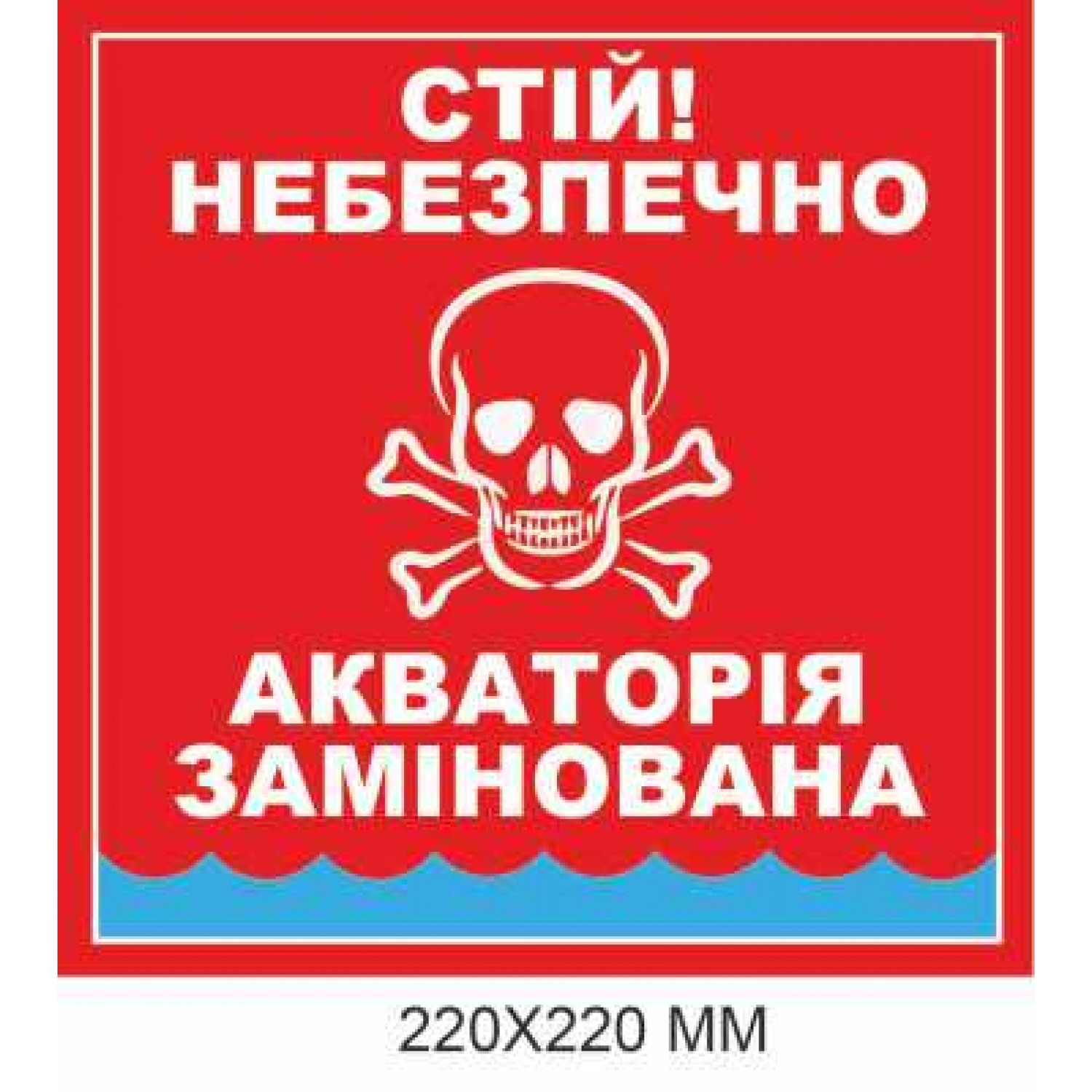 - Предупреждающий знак минной опасности Акватория заминирована красный 220 × 220 мм
