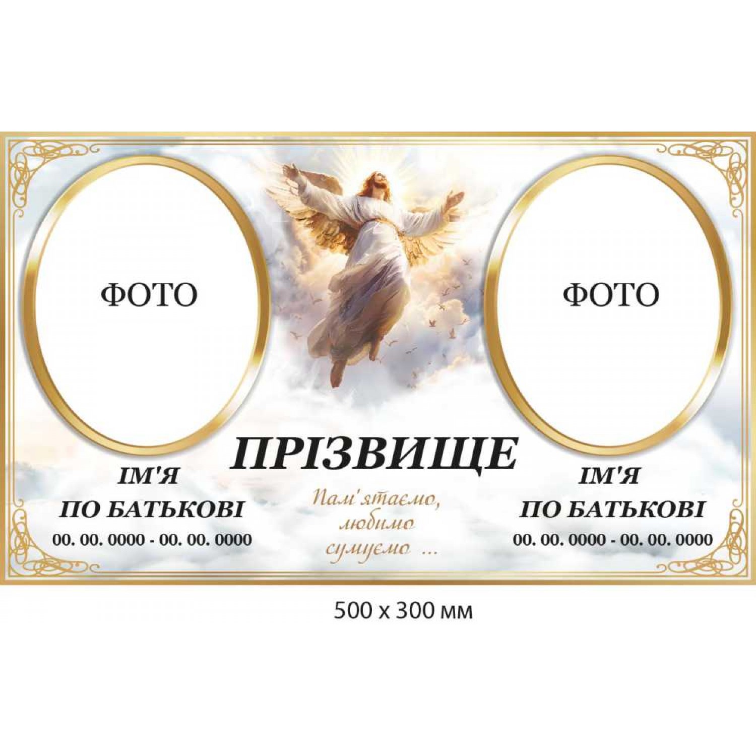 - Ритуальная табличка на памятник 2 фото светлый фон (500х300 мм)