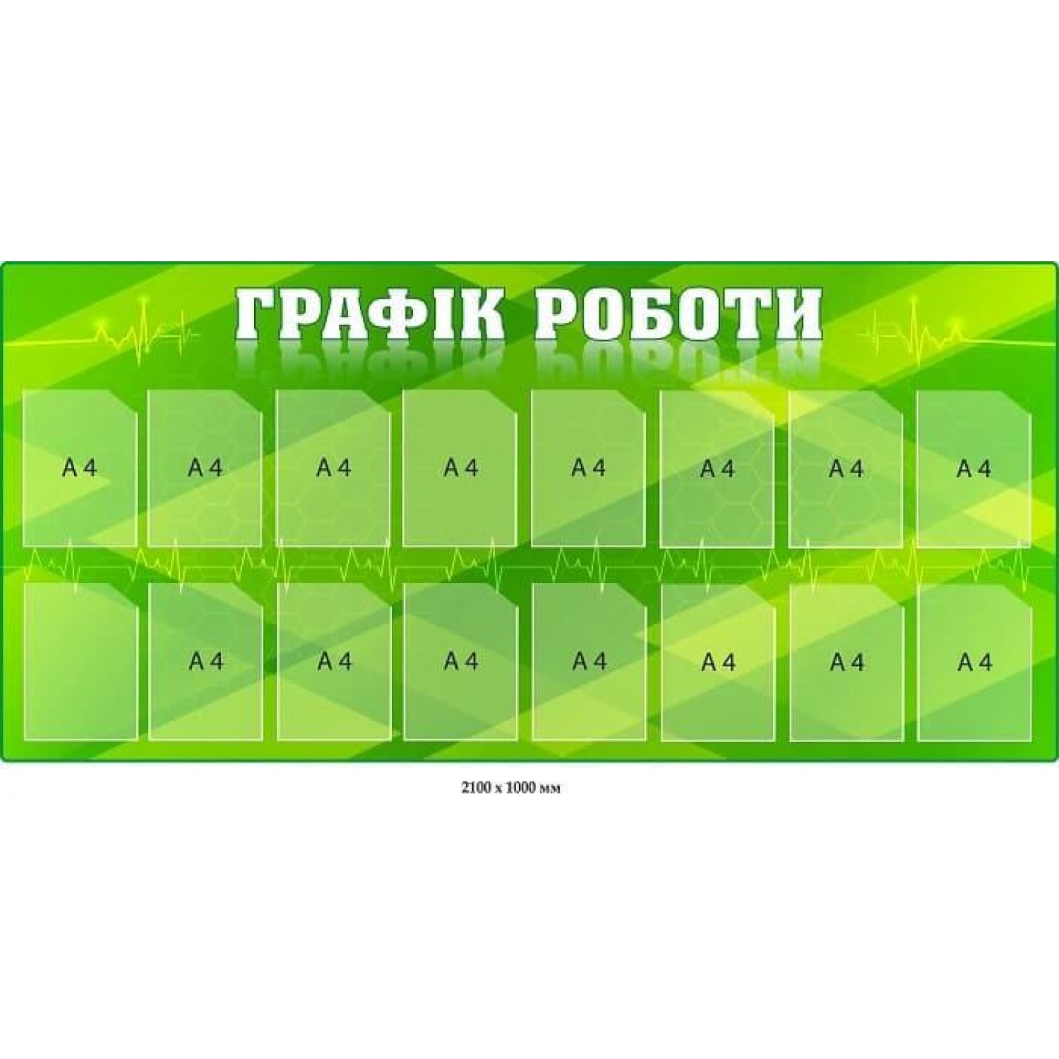- Стенд для медицинских учреждений "График работы" (зеленый фон, кардиограмма)