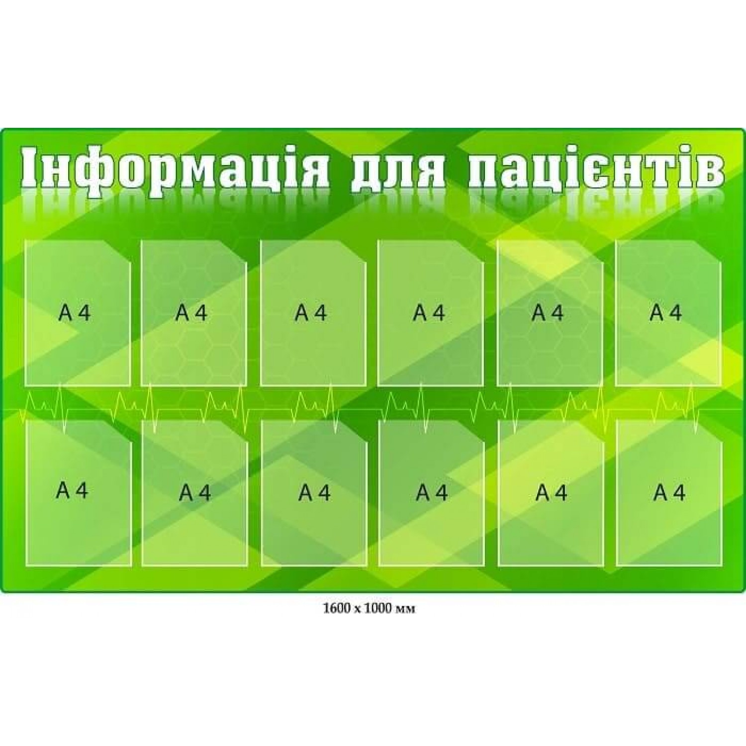 Стенд для медицинских учреждений "Информация для пациентов" (зеленый фон, кардиограмма)