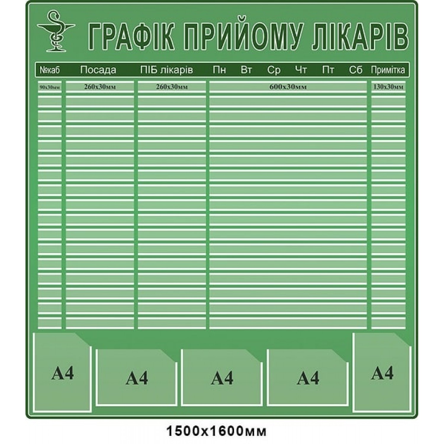- Стенд для мед.учреждений "График приёма врачей" (бледно зеленый)