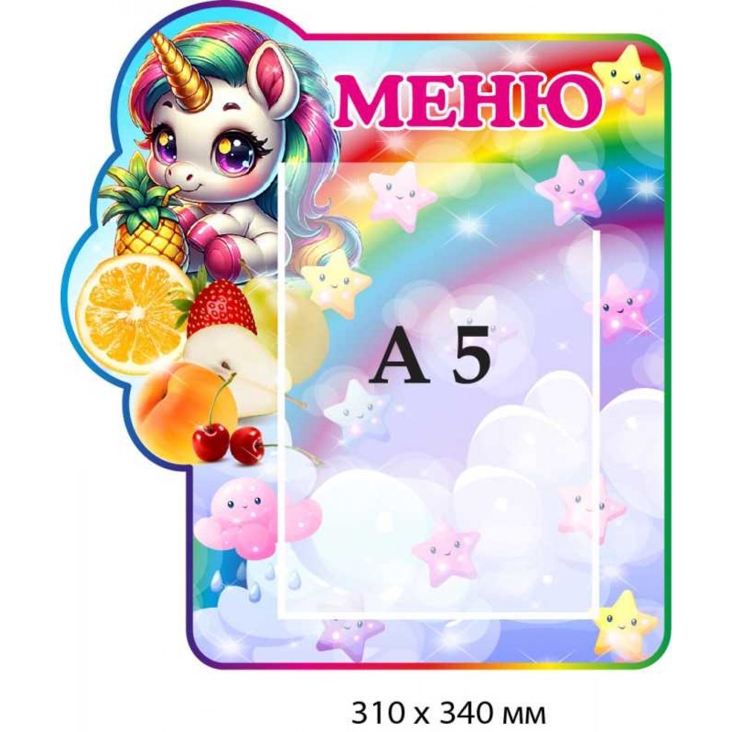 - Стенд для меню в детском саду с карманом А5 (рисунок единорог)