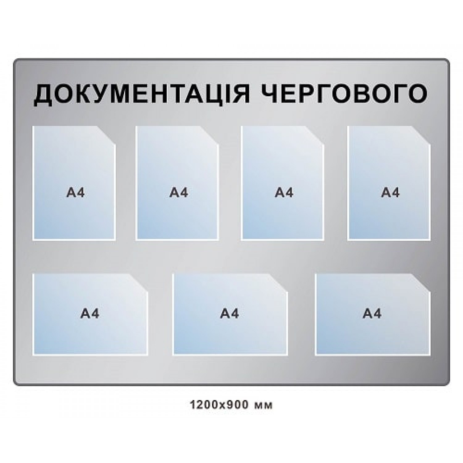 - Стенд Документация очередного цвета серый, карманы А4 формата