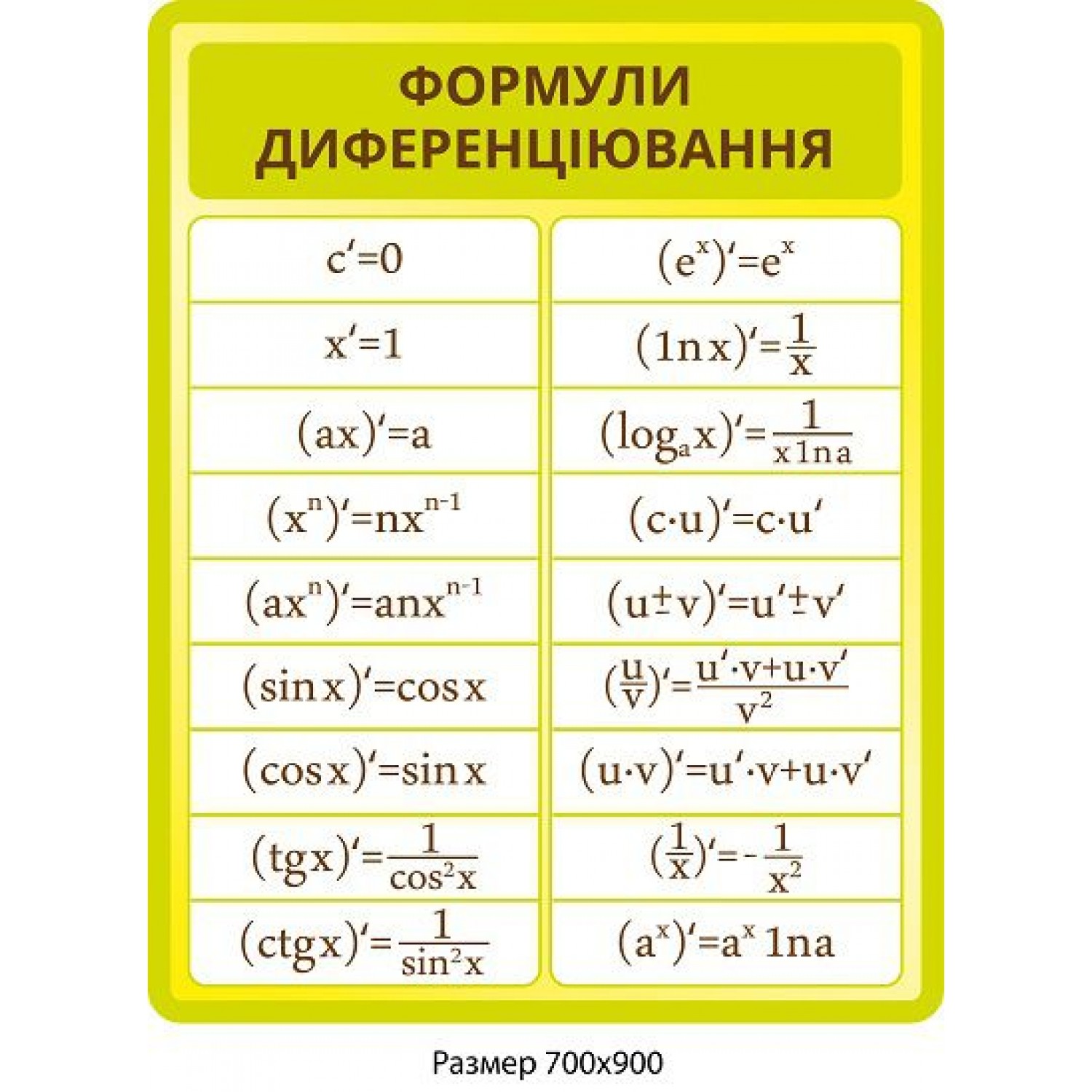 Стенд Формулы диференциирования (желтый)