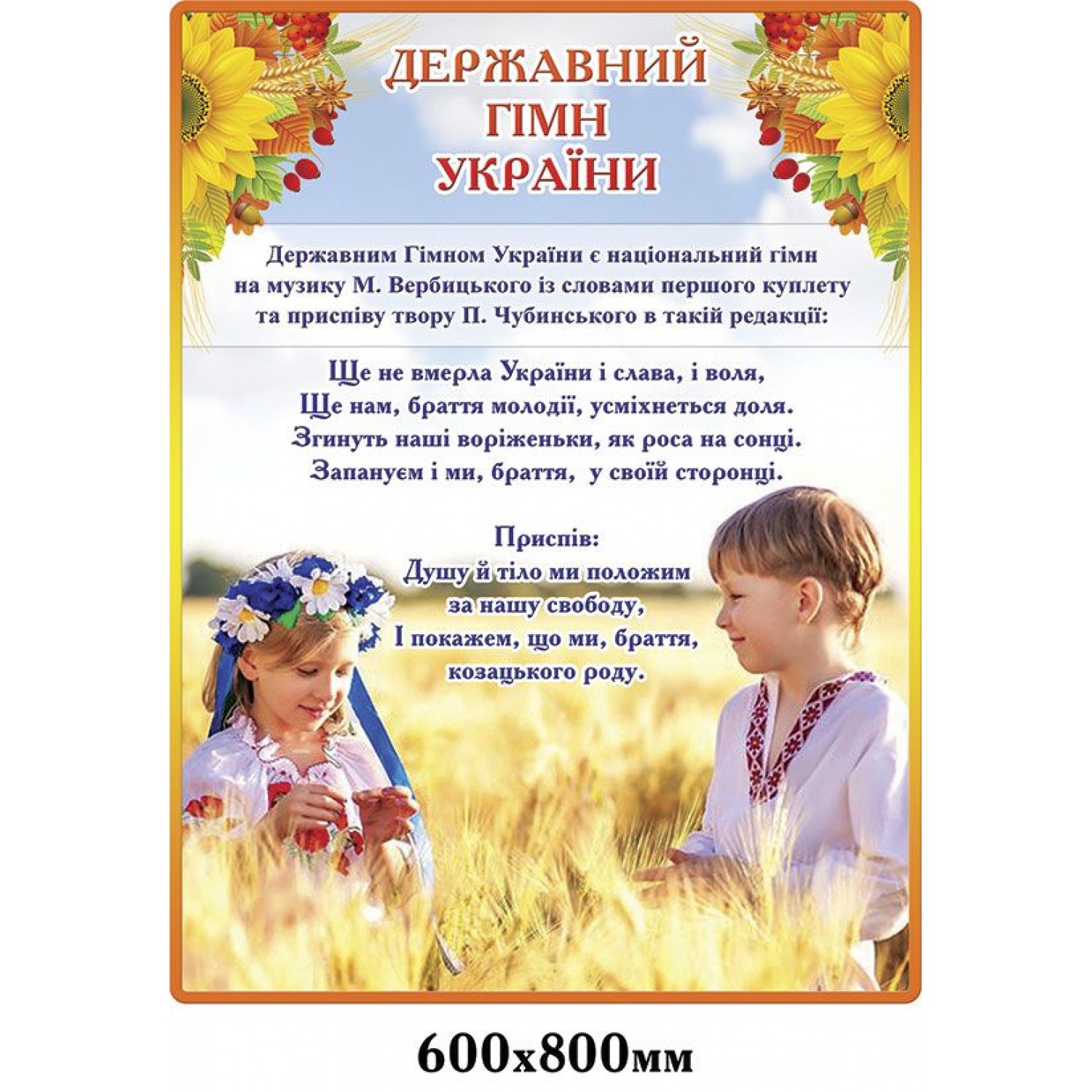 Стенд Государственный гимн Украины Подсолнухи