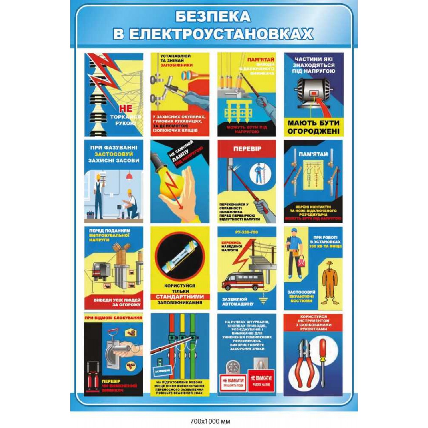 - Стенд-инструкция с иллюстрациями "Безопасность в электроустановках" 700×1000 мм