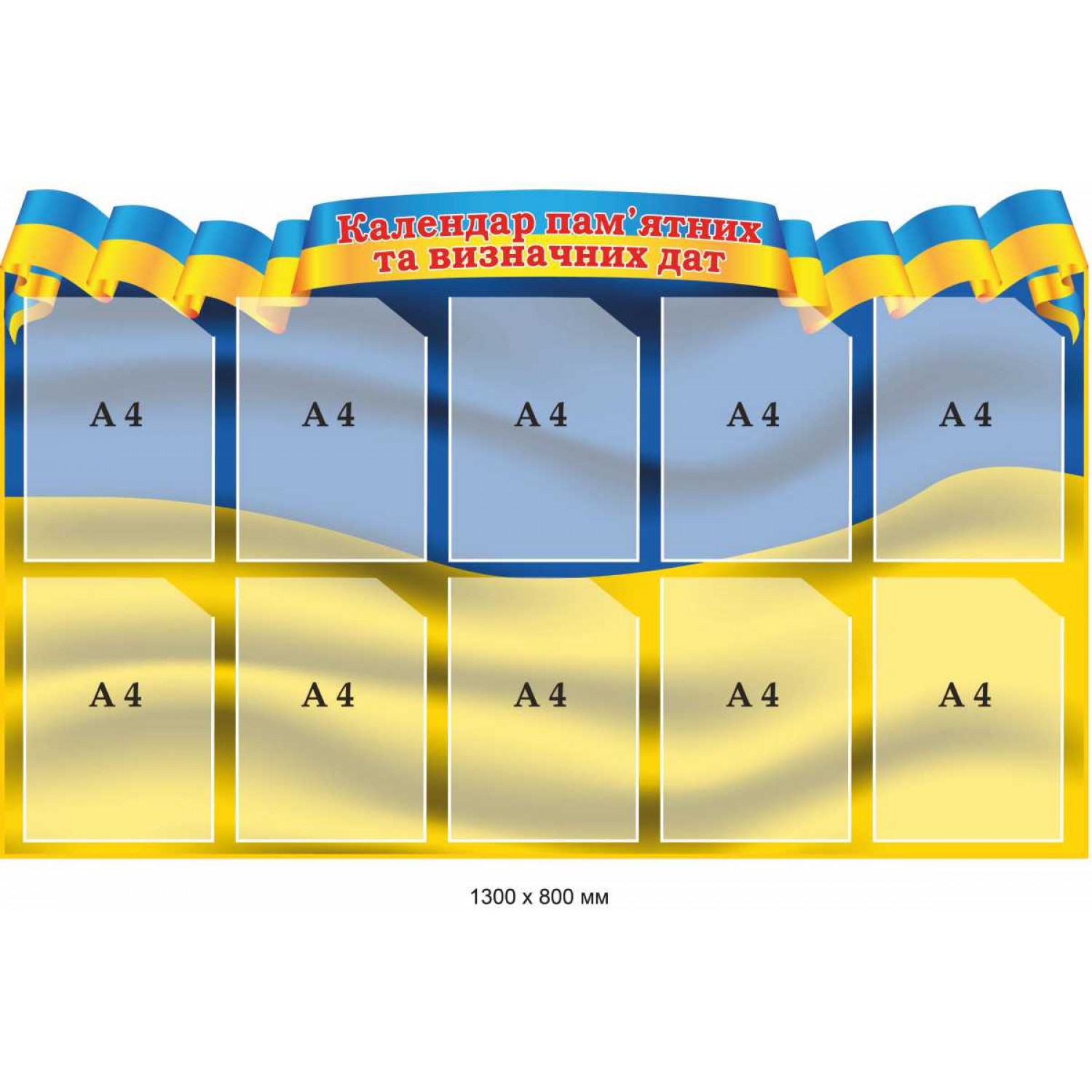 - Стенд Календарь памятных и значимых дат (сине-желтый) 1300х800 мм с карманами