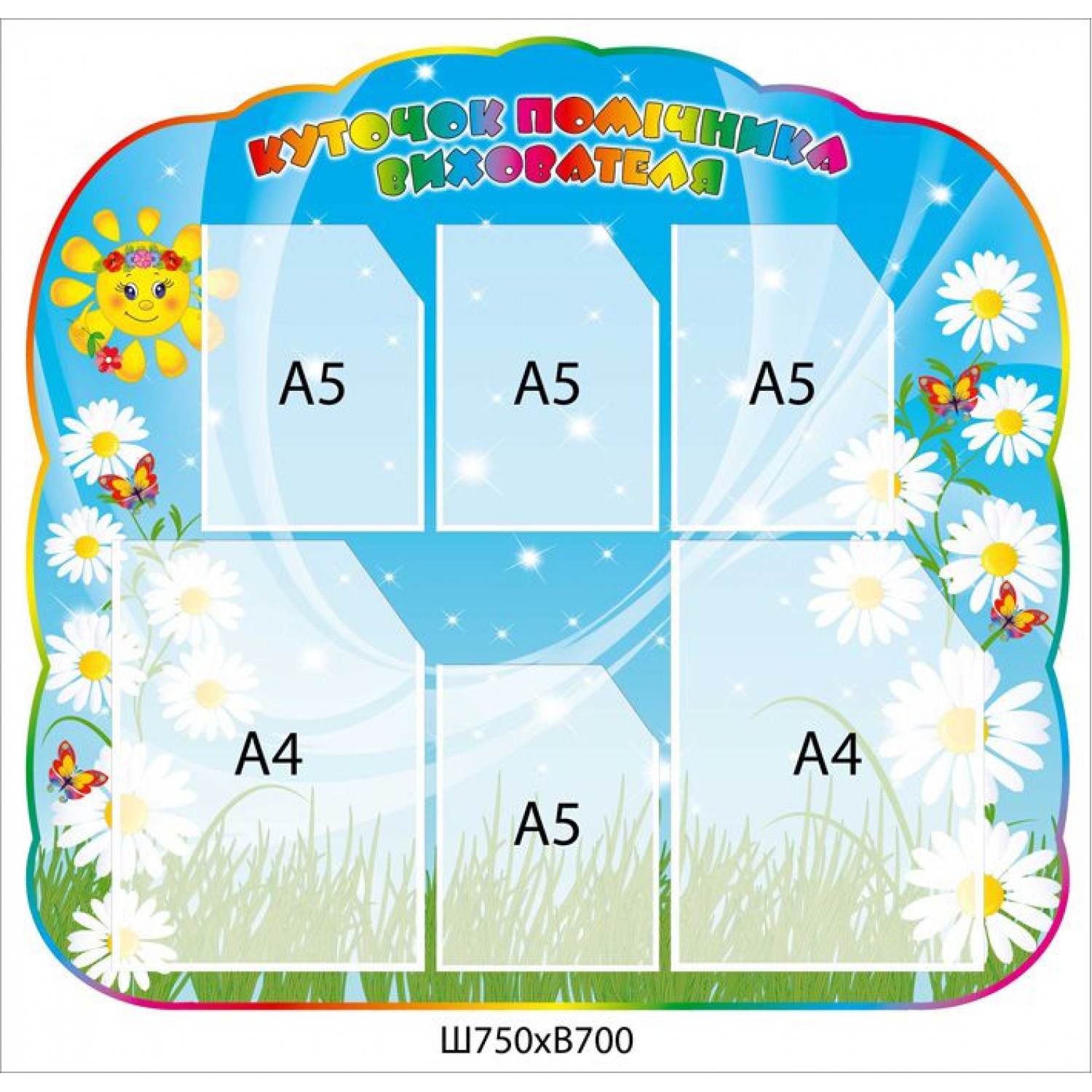 Стенд Уголок помощника воспитателя Ромашки и солнышко