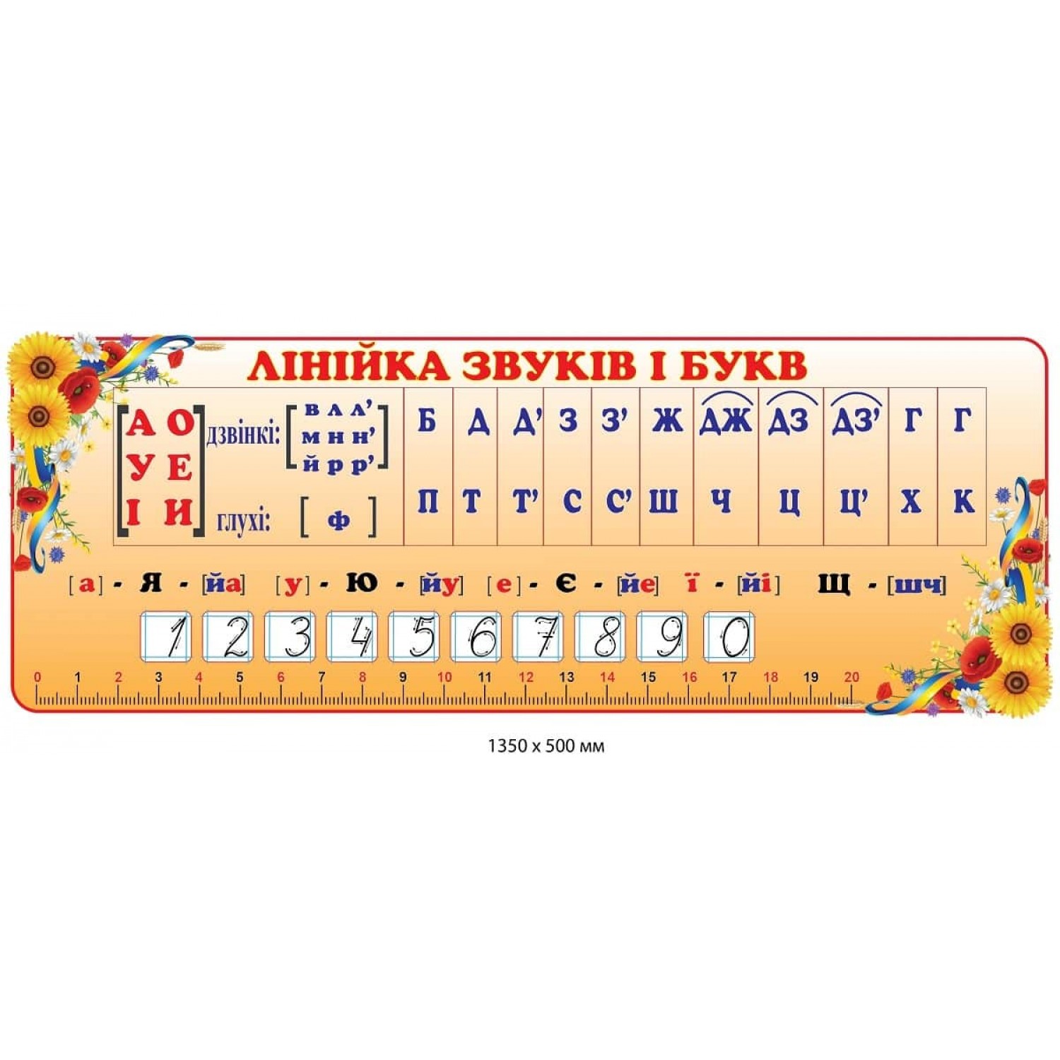 Стенд "Линейка звуков и букв" (бежевый фон, цветы по углам)