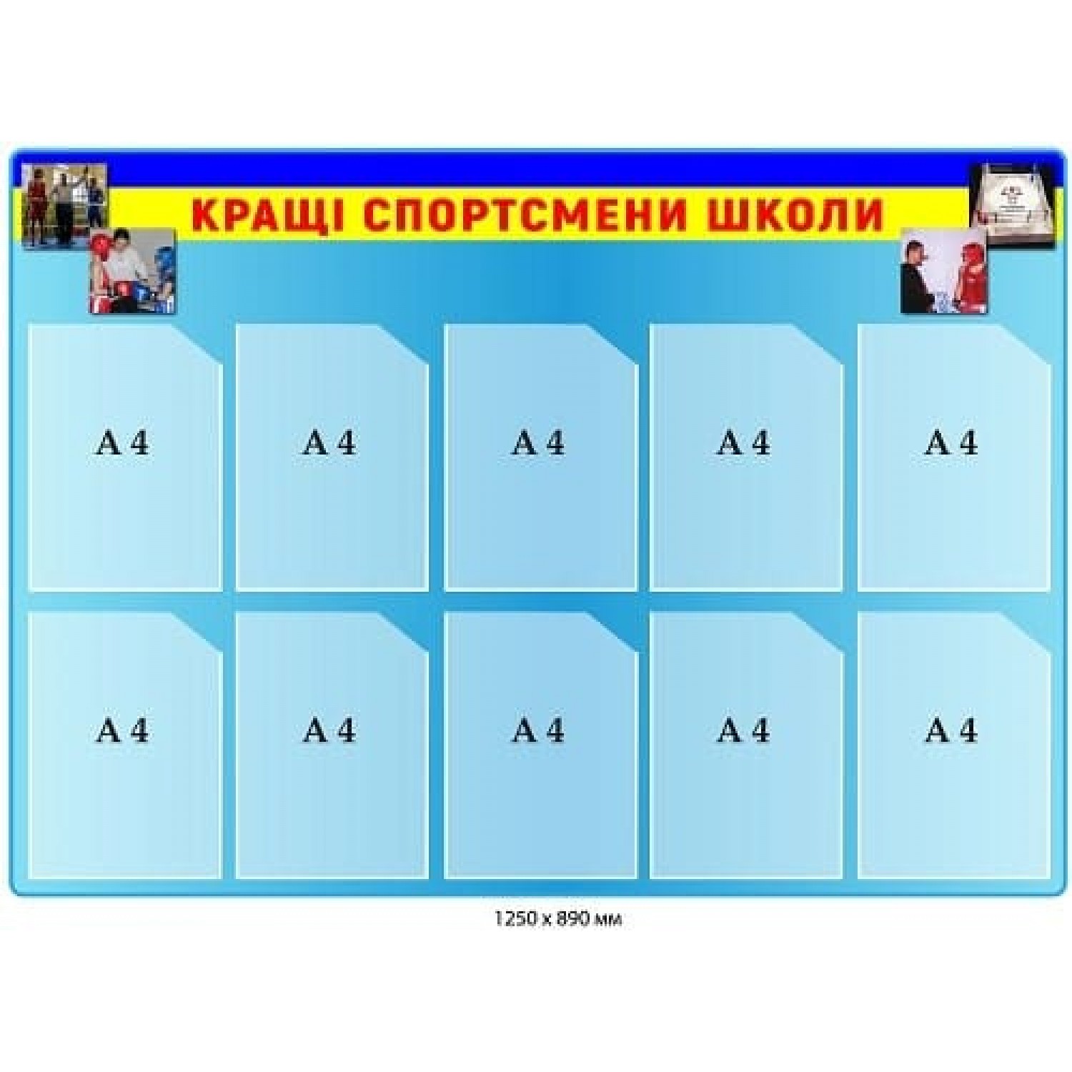 Стенд "Лучшие спортсмены школы" с фотографиями голубой