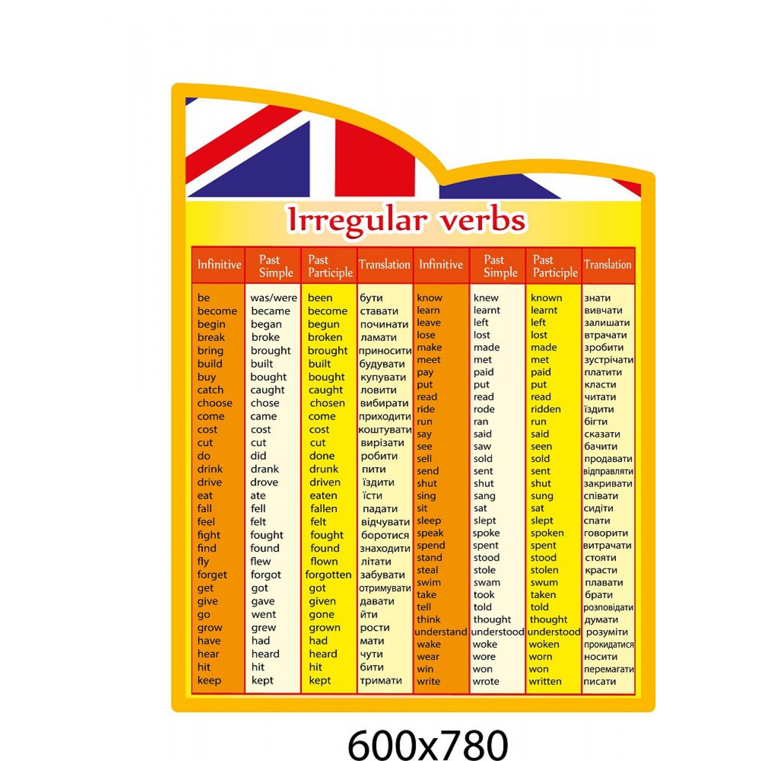 Стенд Нерегулярные глаголы (английский язык)
