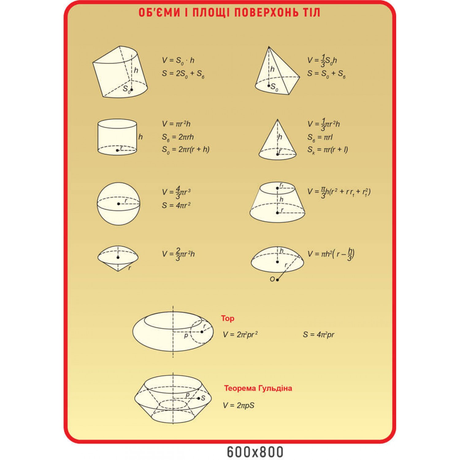 - Стенд Объемы и площади поверхностей тел