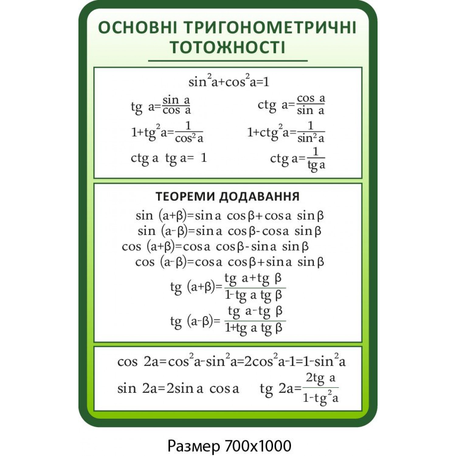 Описание Стенд Основные тригонометрические тождества (зеленый)