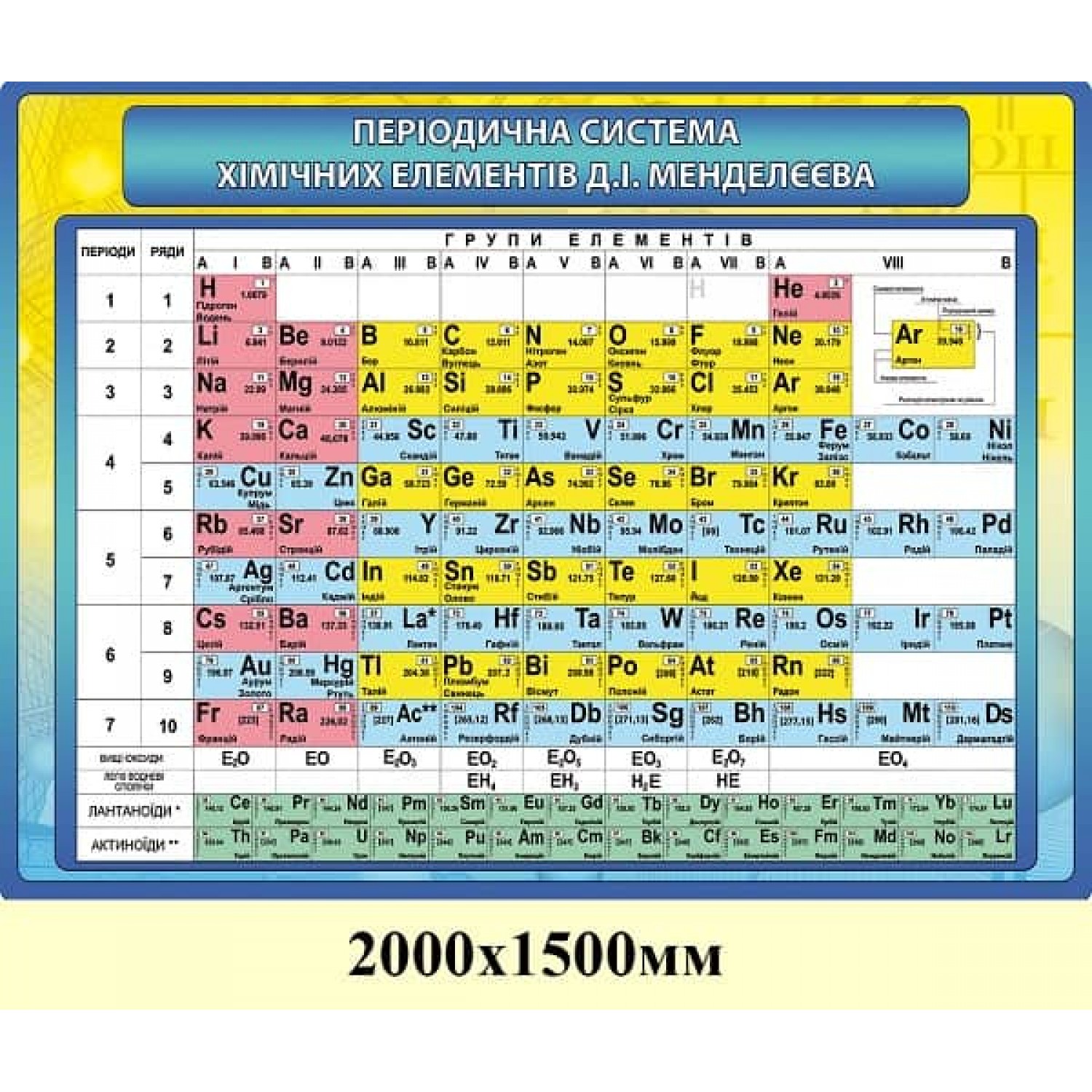 Стенд "Периодическая система Менделеева" (желто-голубой фон)