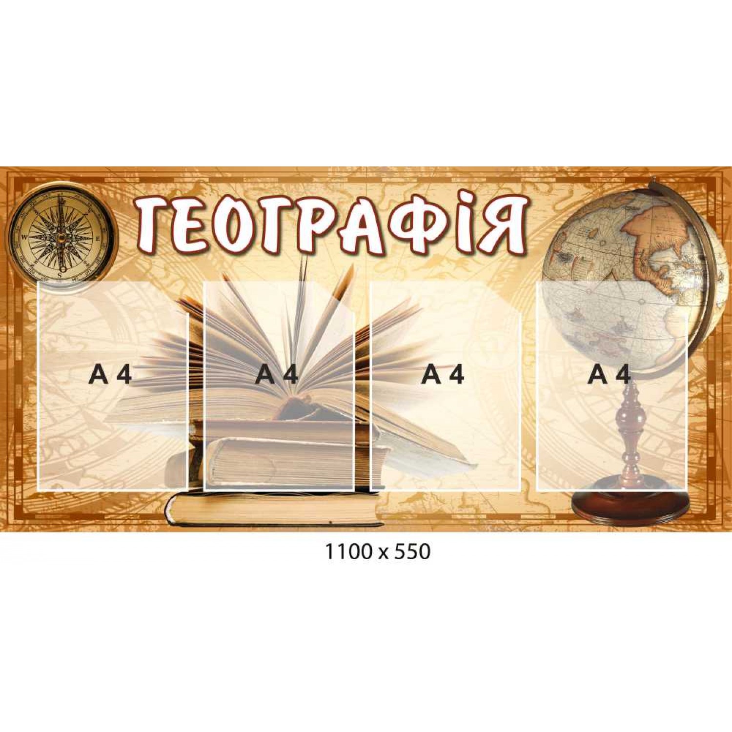Описание Стенд по географии с 4 пластиковыми карманами А4 1100 × 550 мм