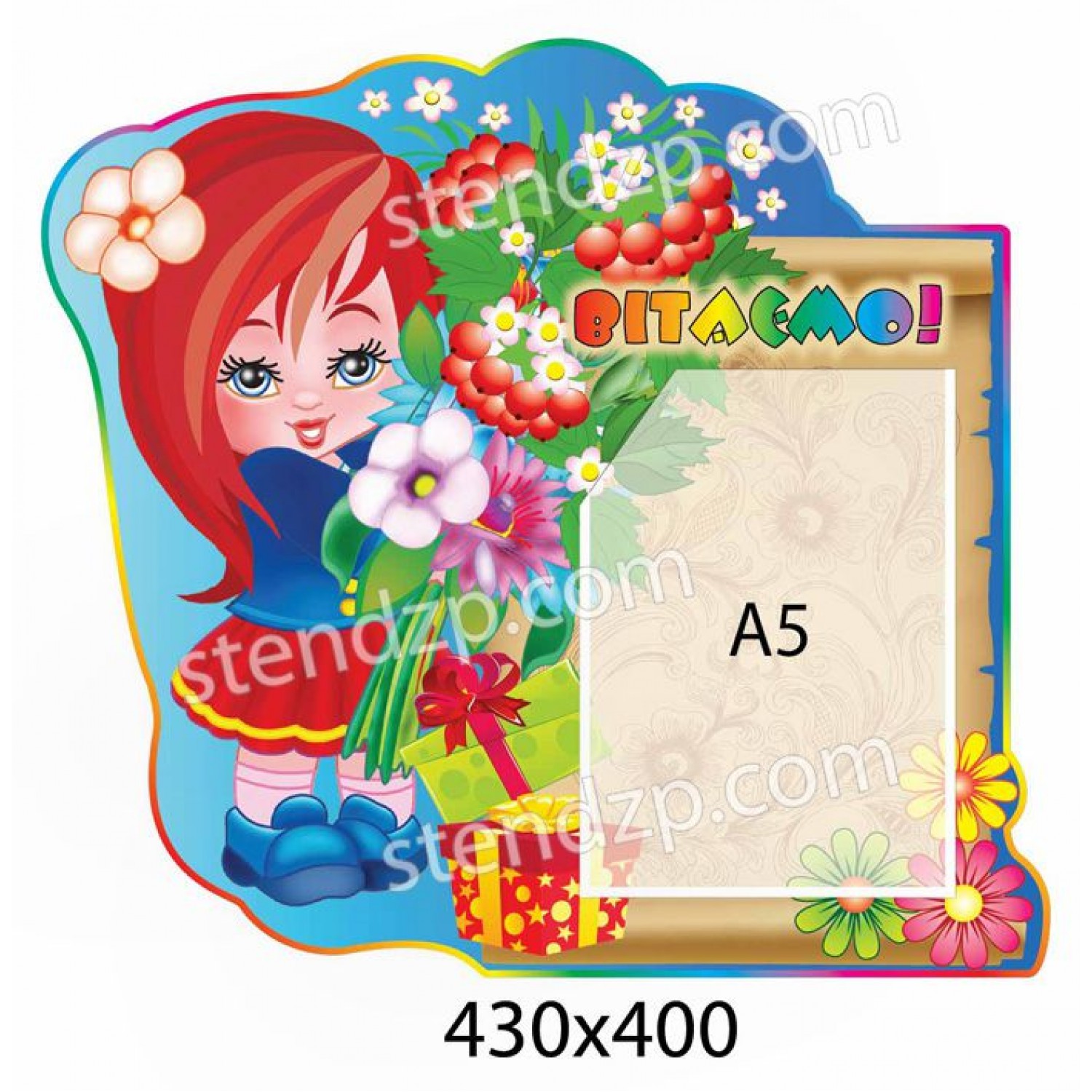 Описание Стенд Поздравляем Девочка с большим букетом