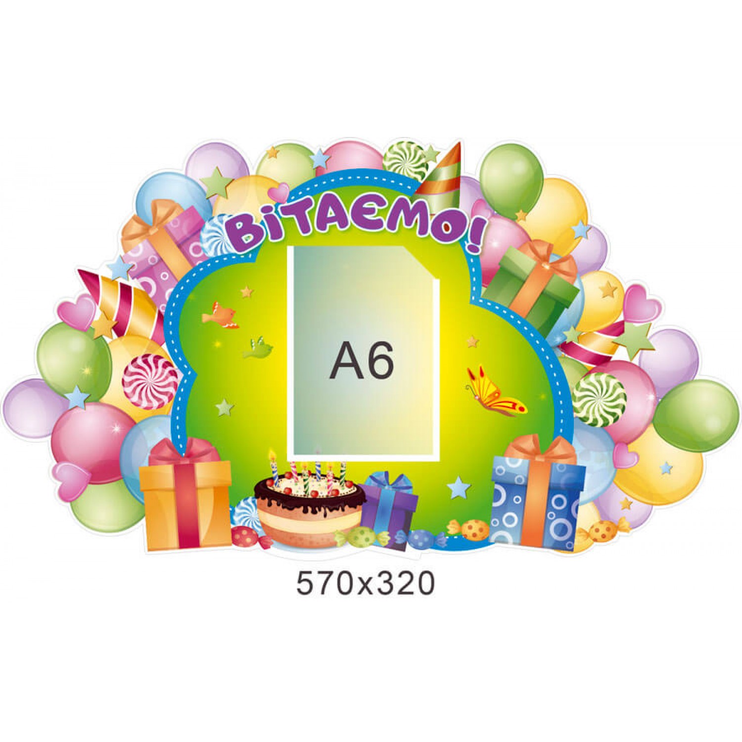 - Стенд Поздравляем с карманом А6 Цветные шарики
