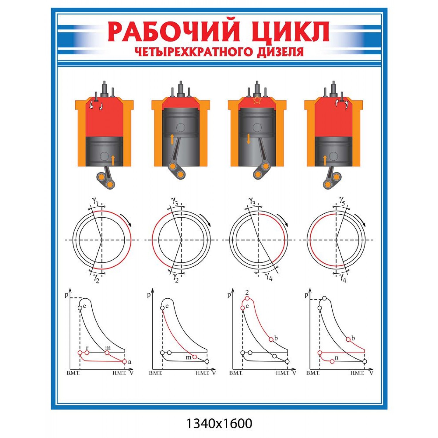 Стенд Рабочий цикл дизеля (синий)